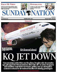 دیلی نیشن چاپ کنیا تمام صفحه یک خود را به حادثه سقوط هواپیمای خطوط هوایی این کشور اختصاص داده است.