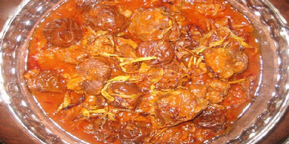 خورش به آلو بومی شهر کرمان است و از آنجایی که در طبخ آن از آلو استفاده میشود، مصرف آن در طول ماه رمضان برای روزهدارانی که مبتلا به تنبلی روده و یبوست هستند، بسیار مفید است.