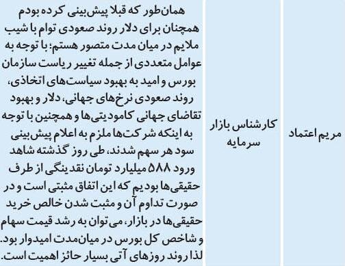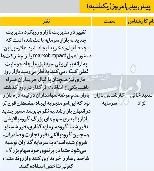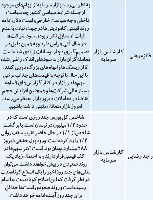 به گزارش همشهری آنلاین به نقل از دنیای اقتصاد، نظرات چهار کارشناس بورس درباره وضعیت امروز بازار سرمایه در پی می آید.