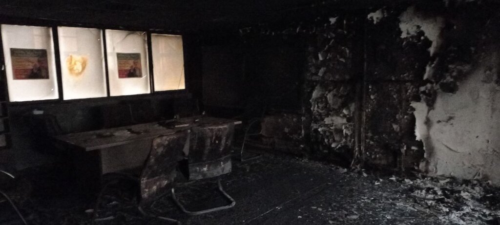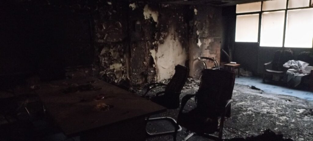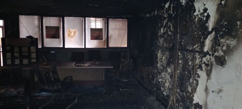 به گزارش همشهری آنلاین - بر اساس تصاویر منتشر شده تقریباً تمامی وسایل این دفتر اعم از کتابها، صندلیها، دستگاه فکس، کشوها و میز جلسات، تخته و تصاویر در آتش سوخته و قابل استفاده نیستند.