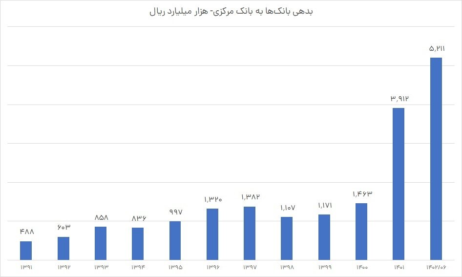 بدهی بانکها به بانکمرکزی ازجمله علتهای رشد پایه پولی بهشمار میرود که اثر آن را مردم با تورم بالاتری احساس میکنند و تلاش دولت سیزدهم برای جلوگیری از رشد ترازنامه بانکها و ناترازی آنها همچنان ادامه دارد. یک علت رشد بدهی بانکها به بانکمرکزی ناشی از ناترازی بین منابع و مصارف خود بانکهاست؛ بهگونهای که بانکها فراتر از حد مجاز خود اقدام به خلق نقدینگی میکنند و بهدلیل کسری منابع به بانکمرکزی فشار میآورند تا به آنها پول بیشتری تزریق کند.
