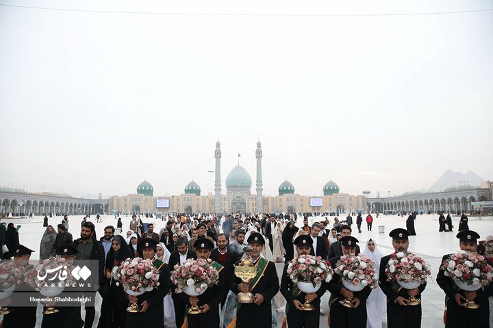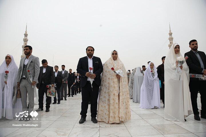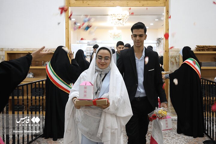 در آستانه ولادت باسعادت حضرت فاطمه زهرا (س) جشن ازدواج ۷۳۰ زوج دانشجوی دانشگاههای استان قم در حرم حضرت معصومه (س) و مسجد مقدس جمکران برگزار شد.