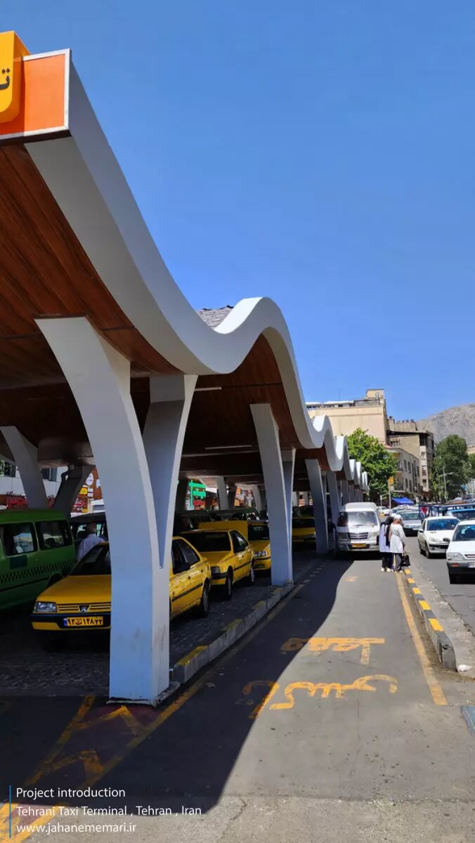 فرم کلی این پایانه به صورت خطی طراحی شده است تا ۸ خط تاکسی به صورت اختصاصی در آن مستقر شوند. سقف پروژه با طول ۸۰ متر و عرض ۸.۵ متر، دارای خطوط قوسی در سه سطح ارتفاعی ۴، ۴.۵ و ۵ متر است که تداعیگر فرم تپهها و کوههای البرز میباشد. این ساختار ریتمیک علاوه بر القای حس پویایی، با ایجاد دهانههای ورودی و خروجی، عنصر «ایوان» در معماری ایرانی را بازآفرینی کرده است.