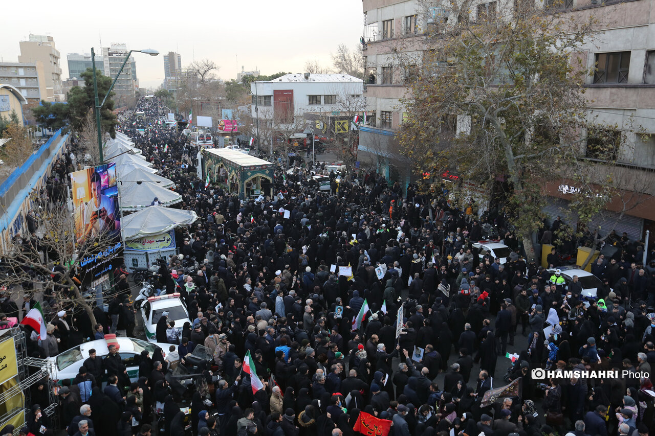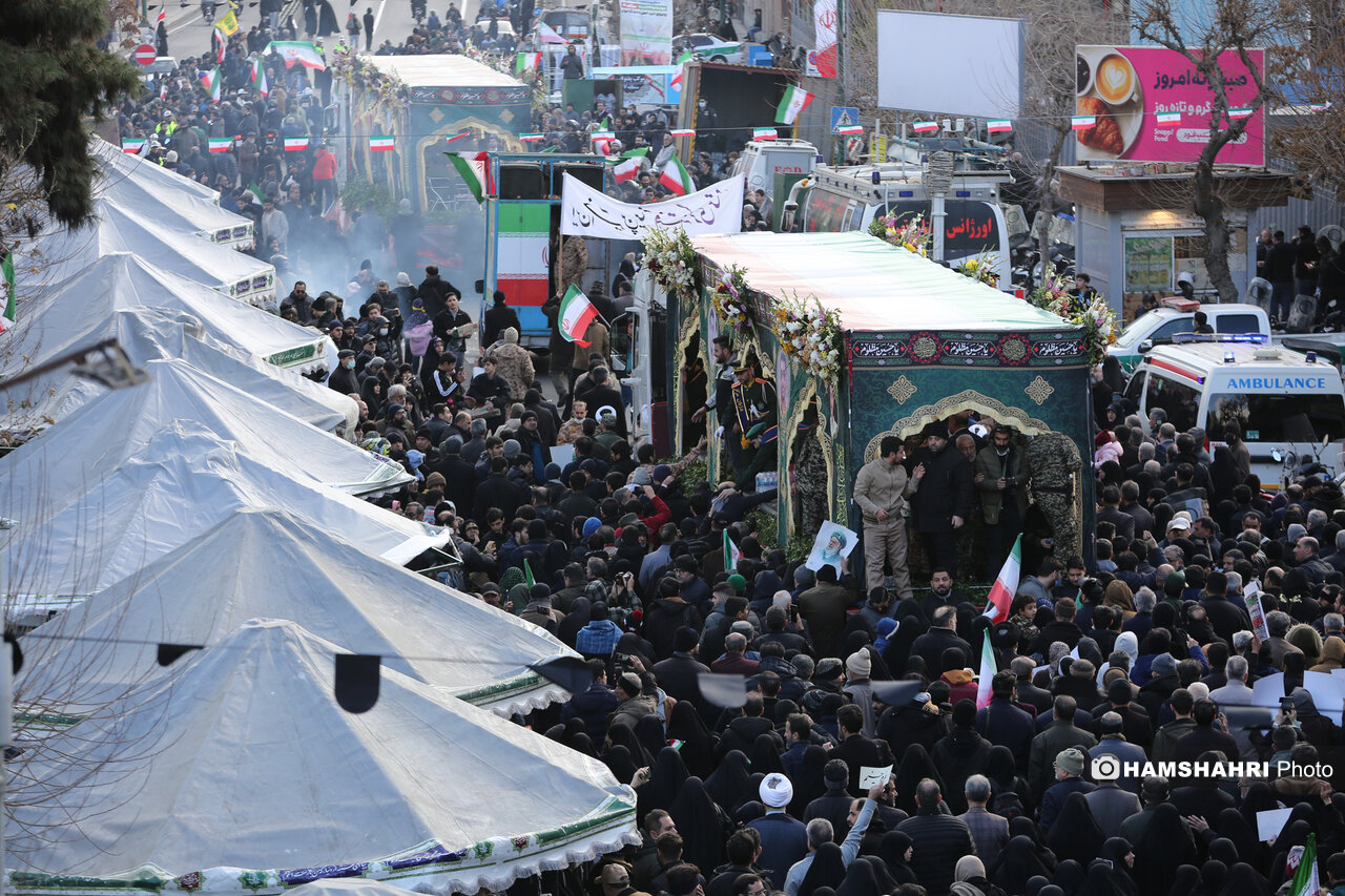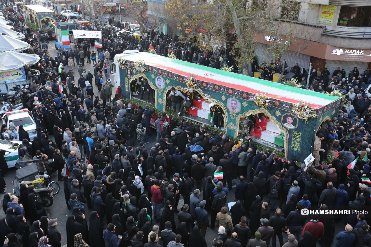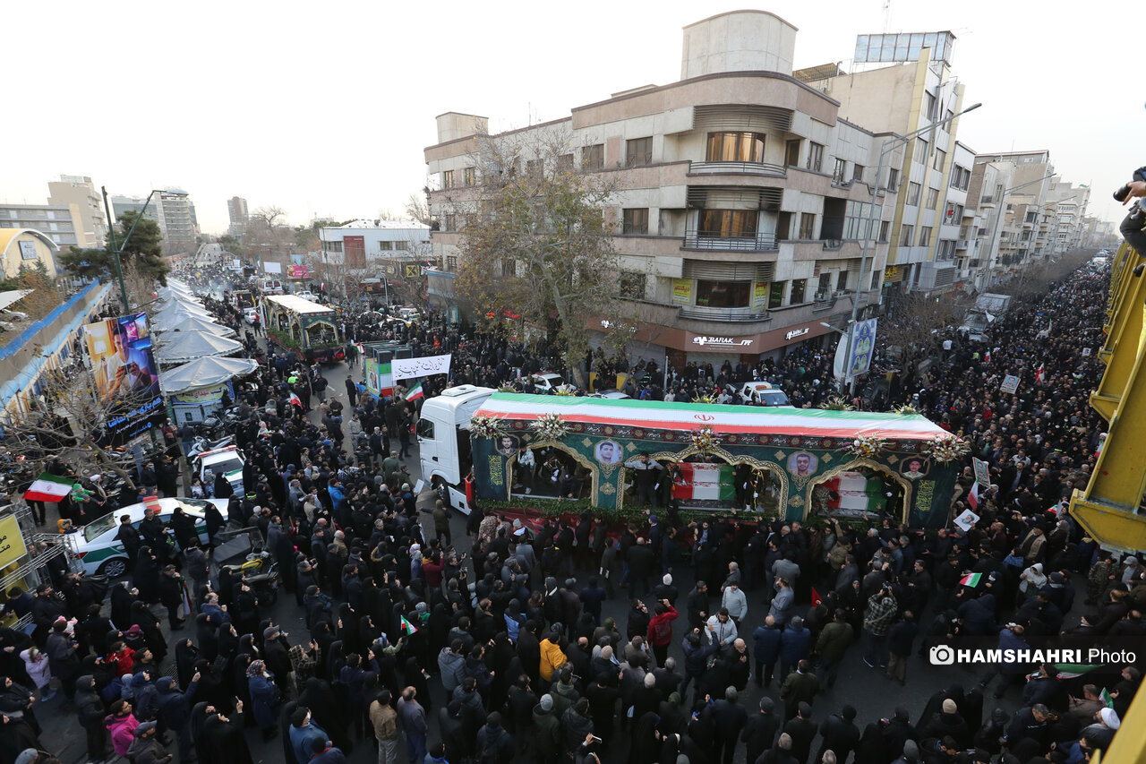 مراسم تشییع پیکر ۱۰۰ شهید مدافع امنیت در ناآرامی های اخیر تهران به شهادت رسیدند عصر چهارشنبه ۲۴ دی ماه با حضور اقشار مردم از مقابل دانشگاه تهران به سمت معراج شهدا برگزار شد.