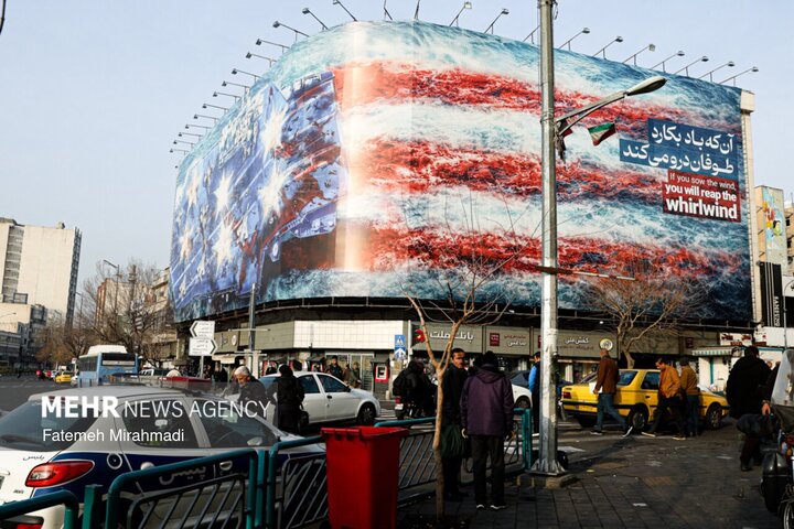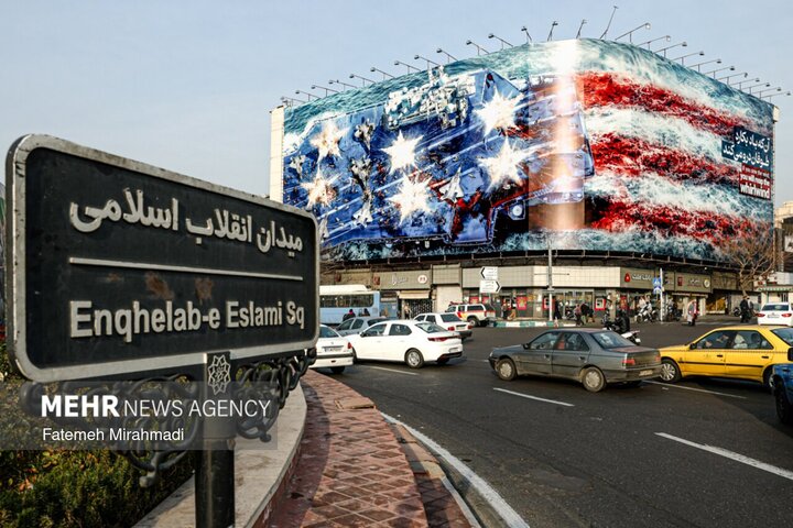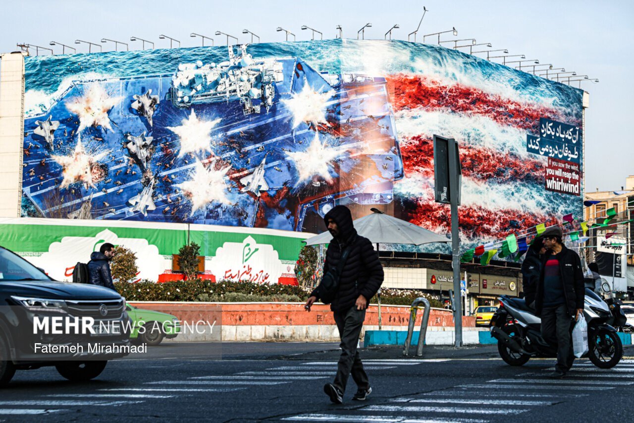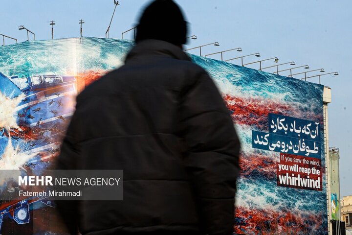 جدیدترین طرح دیوارنگاره میدان انقلاب اسلامی تهران با عنوان «آنکه باد بکارد طوفان درو می کند» رونمایی شد.