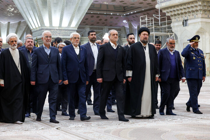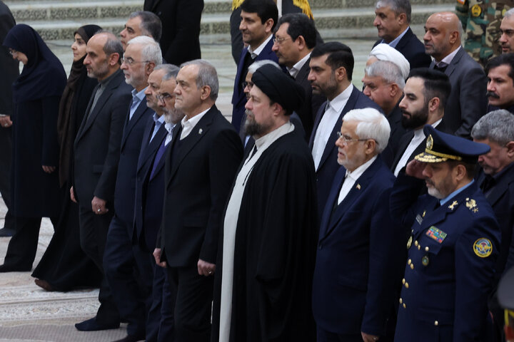 دکتر مسعود پزشکیان و اعضای هیات دولت، صبح امروز شنبه در آستانه سالروز پیروزی انقلاب اسلامی ، با حضور در مرقد مطهر امام راحل و شهدای انقلاب اسلامی ،با آرمانهای بلند بنیانگذار کبیر جمهوری اسلامی ایران و شهدای انقلاب، تجدید میثاق کردند.