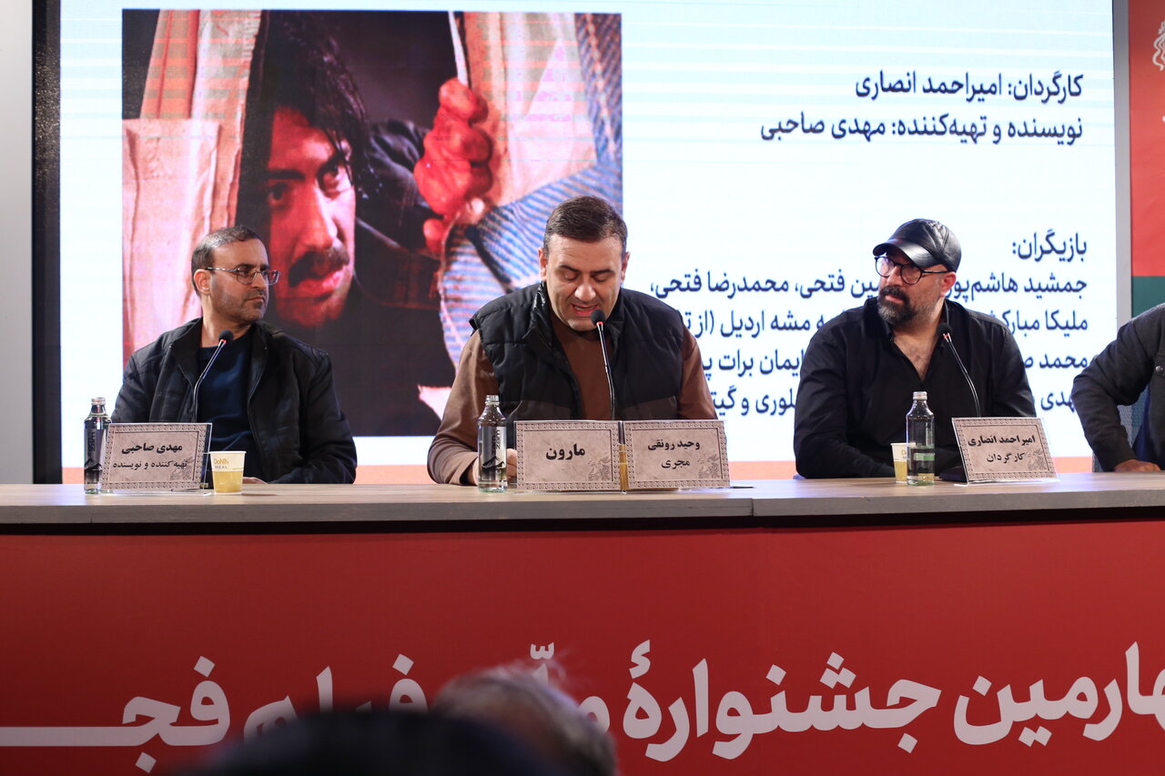 مراسم فوتوکال و نشست پرسش و پاسخ فیلم «مارون» به کارگردانی امیراحمد انصاری، چهارشنبه (۱۵ بهمن ۱۴۰۴) در پنجمین روز چهلوچهارمین جشنواره فیلم فجر در پردیس سینمایی ملت (سینمای میزبان منتقدان سینما و اهالی رسانه) برگزار شد.