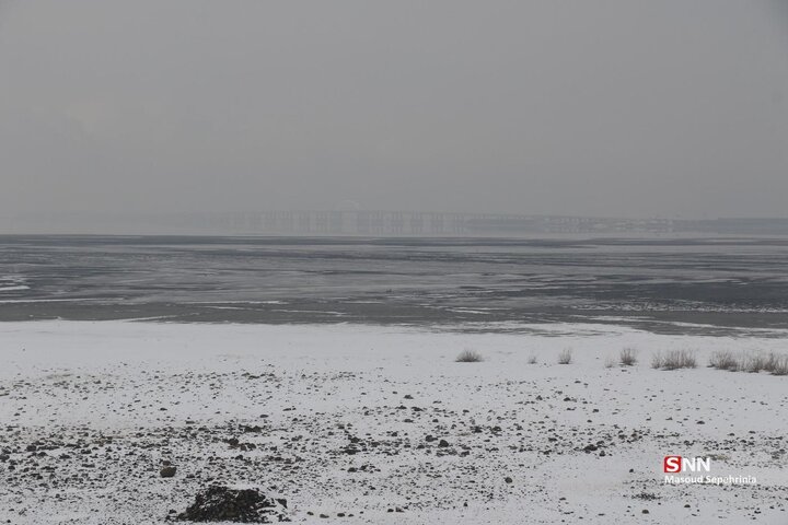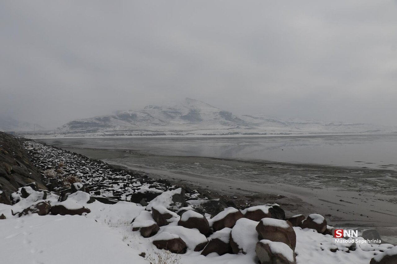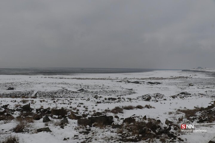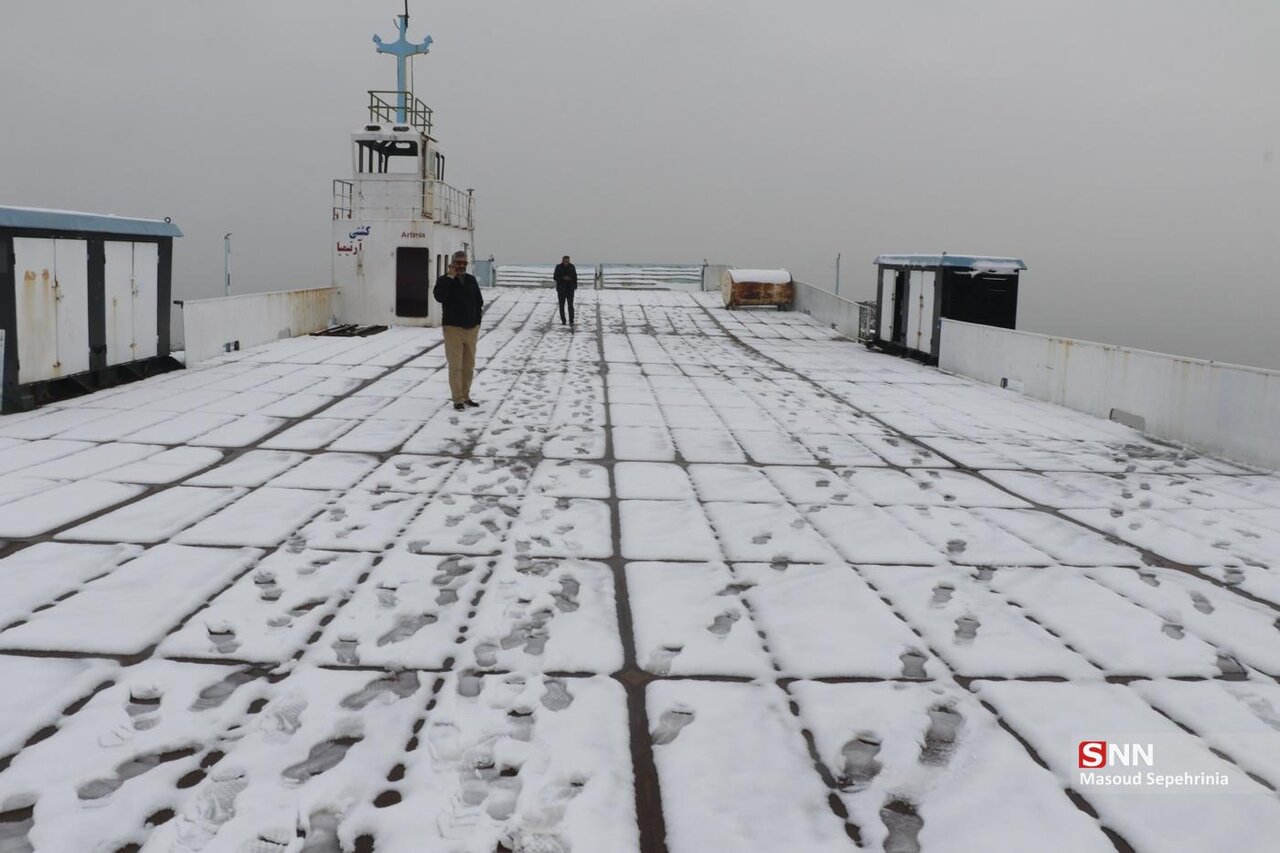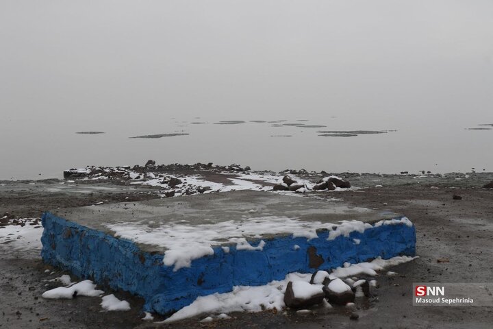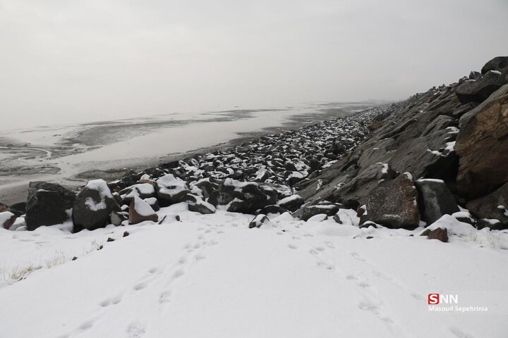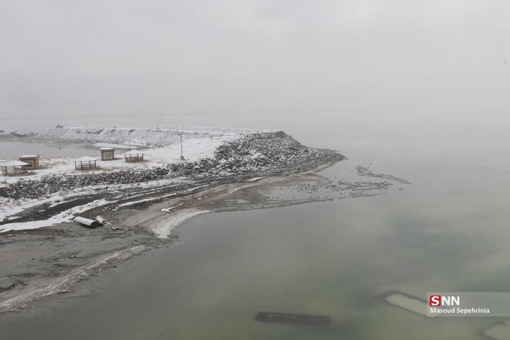 تصاویری از بارش برف امروز در دریاچه ارومیه در رسانه ها منتشر شده است .