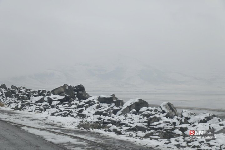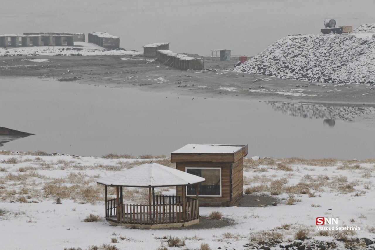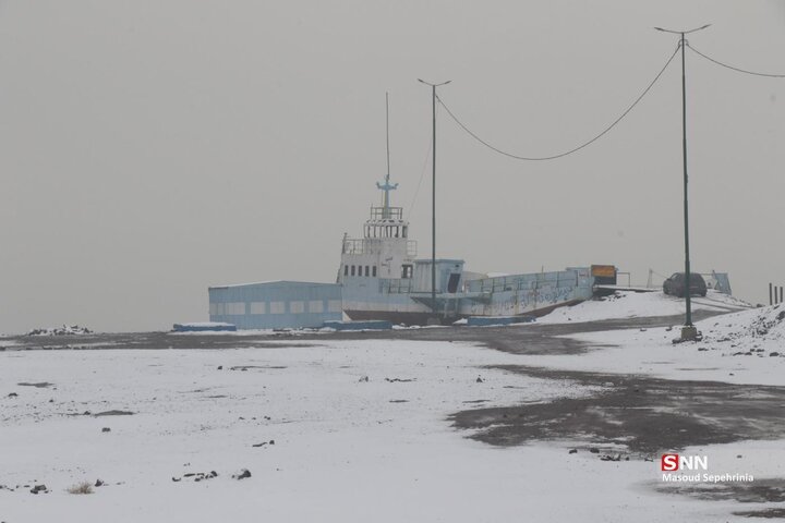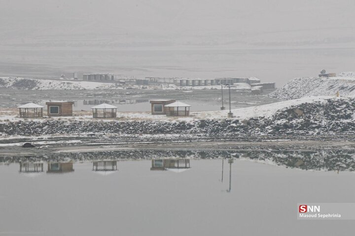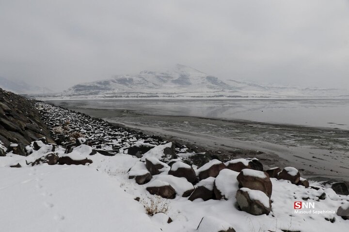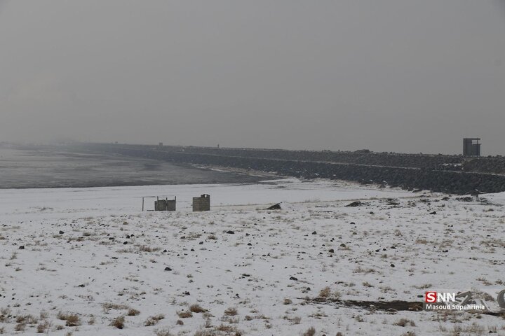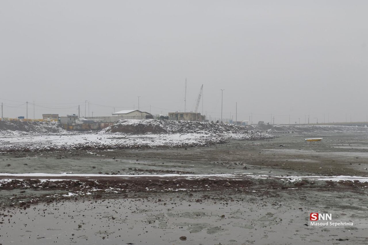 تصاویری از بارش برف امروز در دریاچه ارومیه در رسانه ها منتشر شده است .