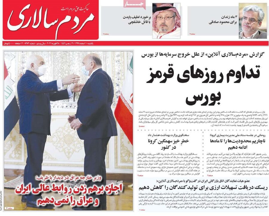 نامه ۳۷ صفحه‌ای خاتمی به رهبر معظم انقلاب، کاهش معاملات و افزایش ۹۷ درصدی قیمت مسکن و جدال برای صندلی داغ مهم‌ترین عناوینی هستند که روزنامه‌های دهم اسفند به چاپ رسانده‌اند.