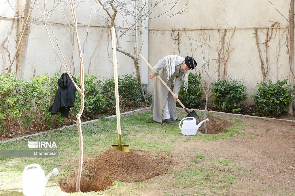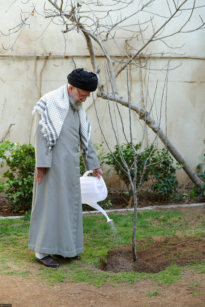 بهمناسبت روز درختکاری، حضرت آیتالله خامنهای، رهبر معظم انقلاب پیش از ظهر دوشنبه (۱۵ اسفند ۱۴۰۱) در محوطه دفتر رهبری نهال کاشتند.