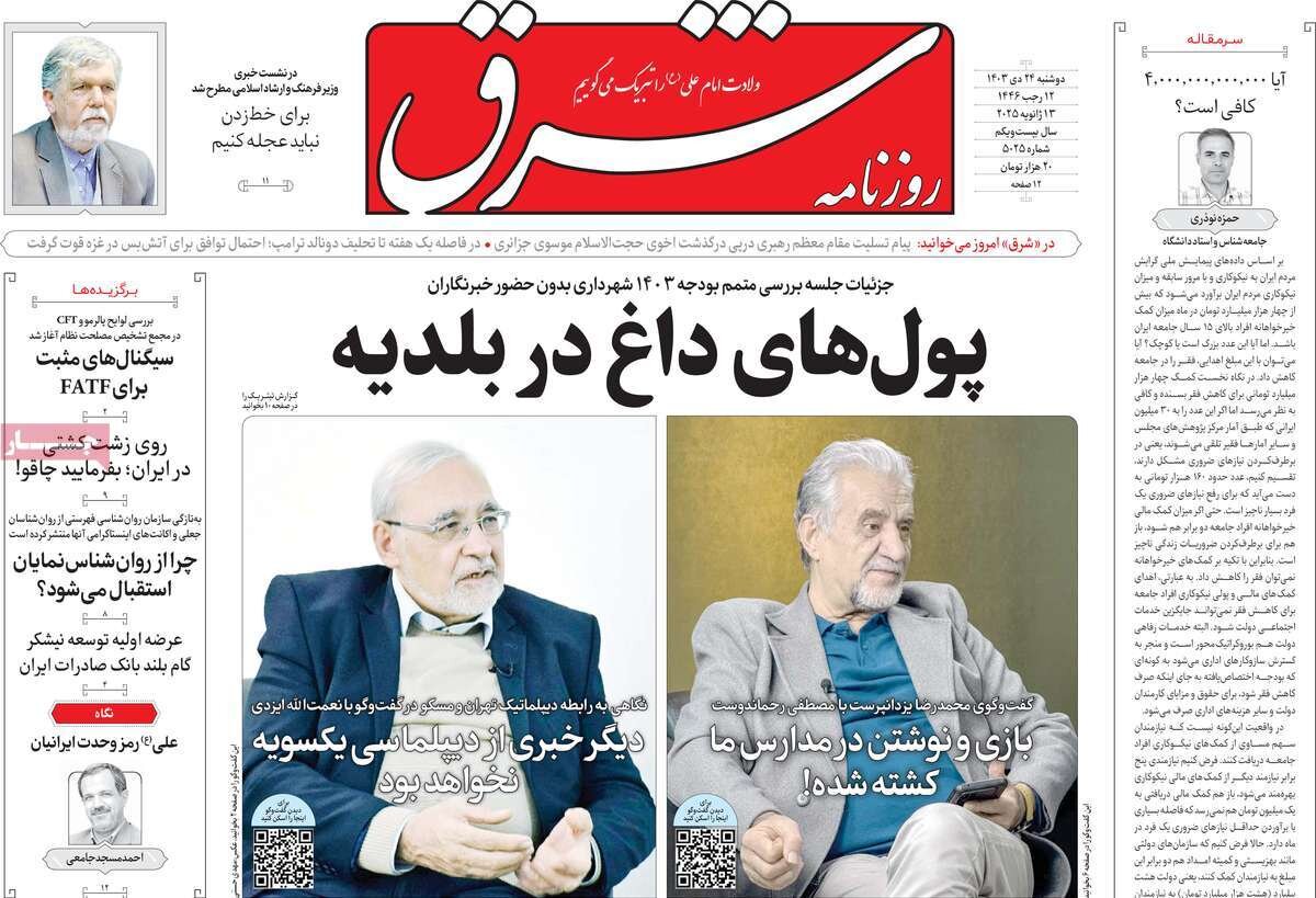 ISSN 1735-6393محاکمه ۵ متهم آلودگی هوا، بازتاب آغاز بررسی FAFT در مجمع تشخیص مصلحت، مصاحبه مطبوعاتی وزیر ارشاد و... از تیترهای مطبوعات امروز است.