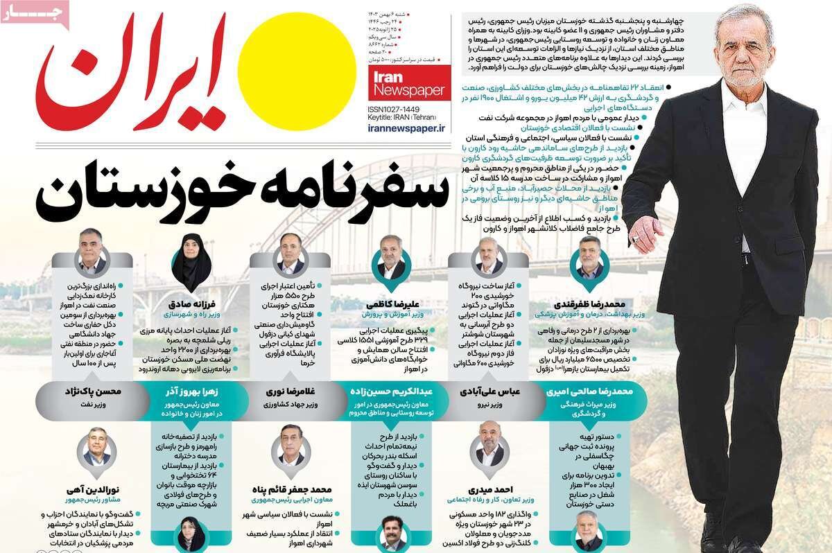 سفر رئیس جمهور به خوزستان، آغاز انتقال ۱۷۹ اتوبوس برقی از گمرک به پایتخت و... از تیترهای مطبوعات امروز است.