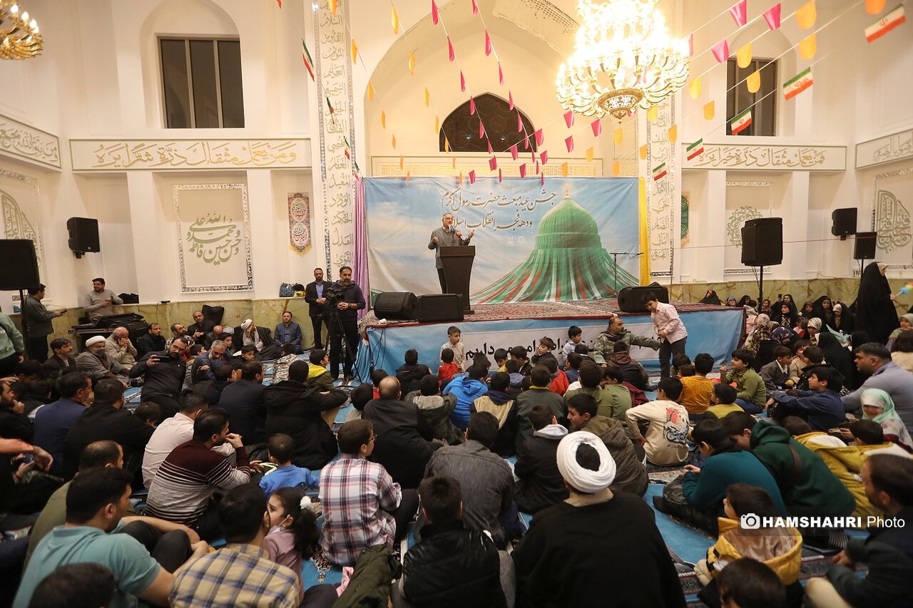 جشن بزرگ مبعث حضرت رسول اکرم (ص) و آغاز دهه فجر انقلاب اسلامی در مسجد صاحب الزمان(عج) در شرق پایتخت منطقه۱۴ با حضور شهردار تهران و همخوانی گروه سرود حاج ابوذر روحی اجرا شد. عکاس :محسن صیادی