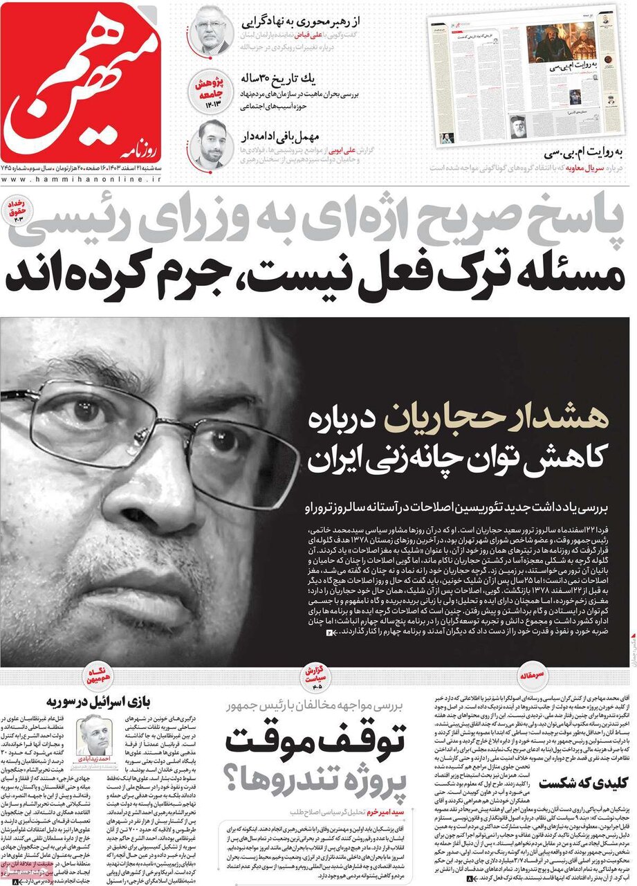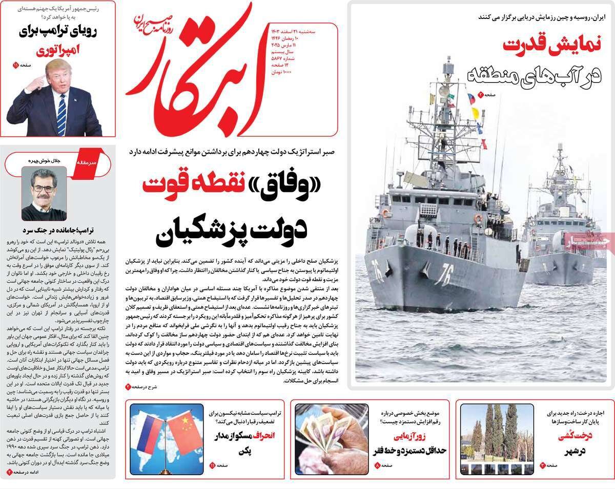 ISSN 1735-6393اظهارنظر رئیس قوه قضاییه درباره جرم دو وزیر دولت سیزدهم، بازتاب مصاحبه محسن رفیقدوست و... از تیترهای مطبوعات امروز است.