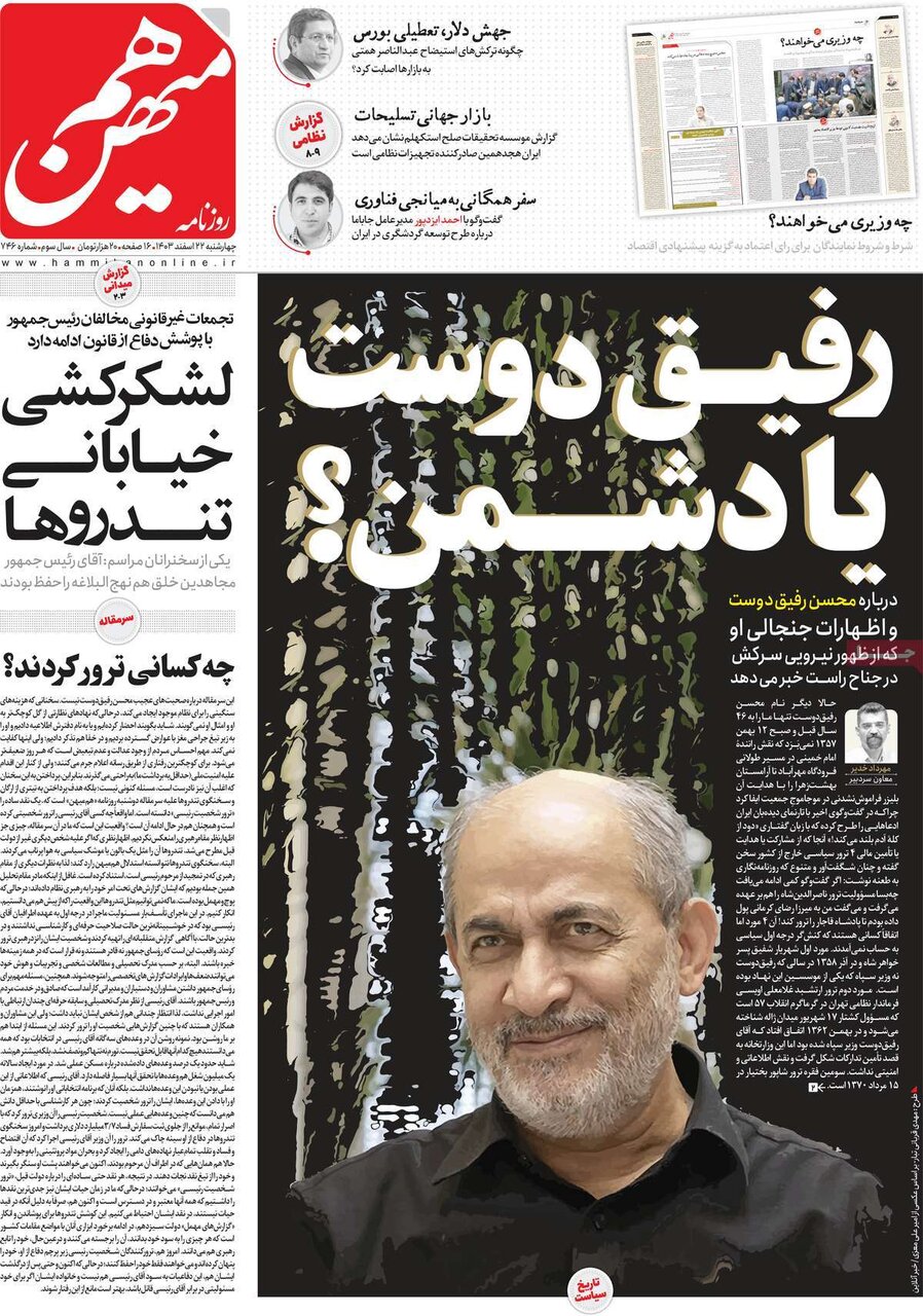 کارت زرد مجلس به وزیر رفاه، ادامه واکنشها به گزارش پوچ و مهمل شرکتهای دولتی، هشدارها درباره کمبودآب، گرانی شب عید و... از تیترهای مطبوعات امروز است.