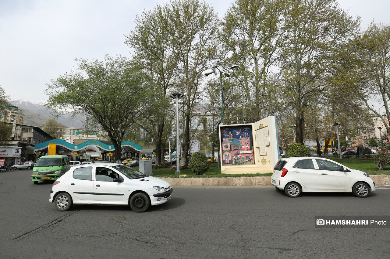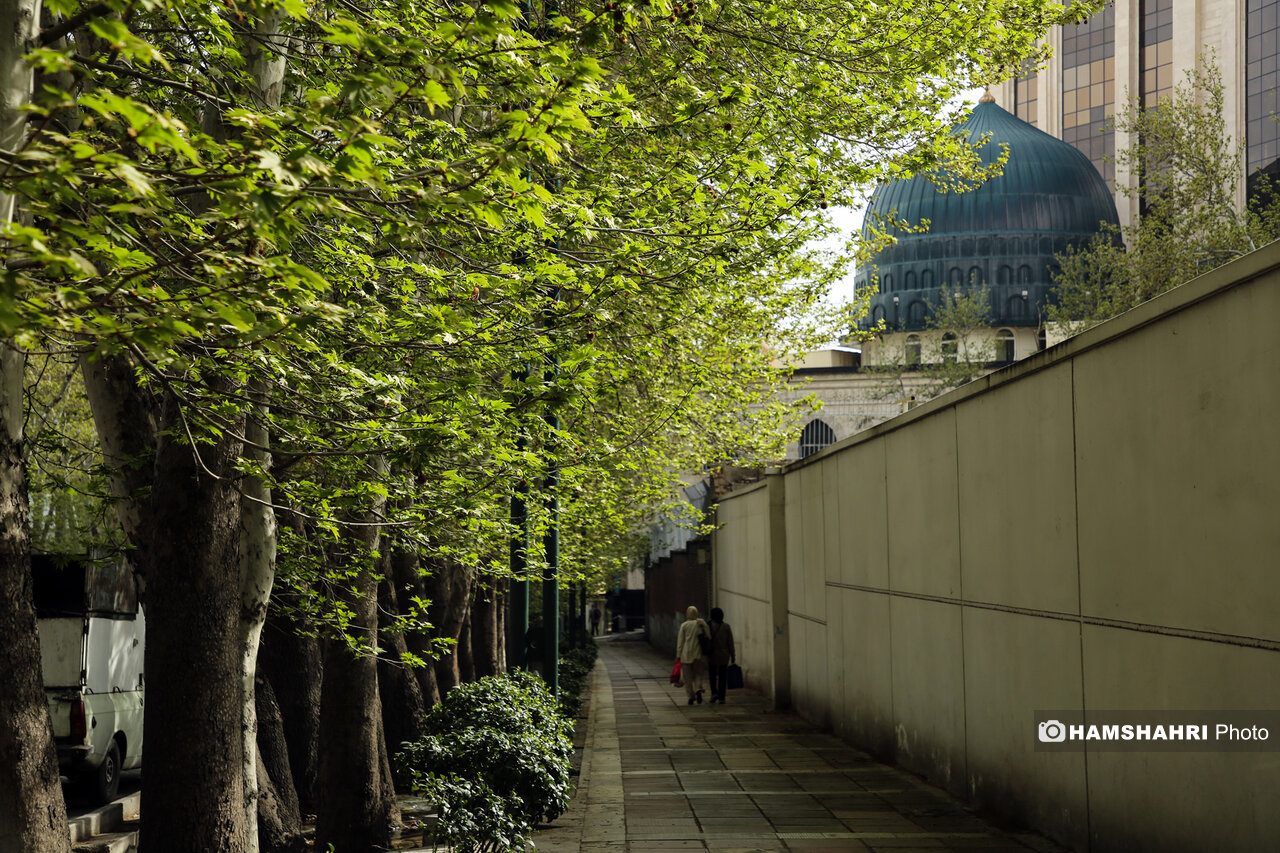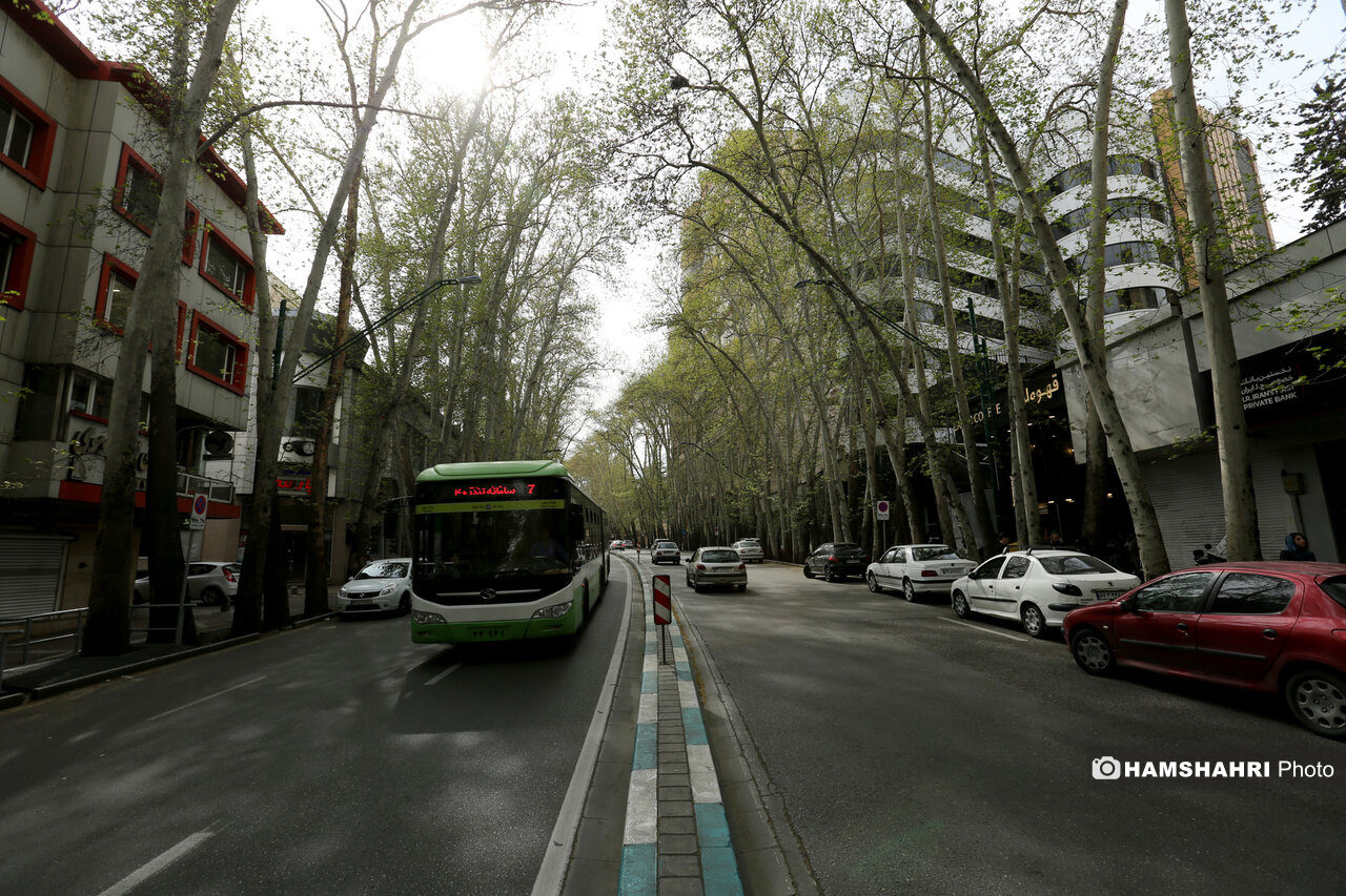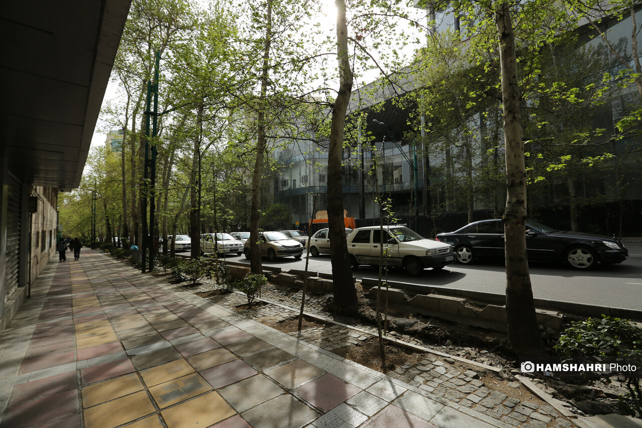 تصاویری زیبا از درختان سبز ولیعصر و حال و هوای بهاری تهران، اینروزها هوای تهران مطبوع و خیابانها آرام است.