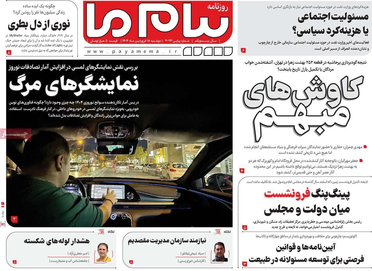 سفر قریب الوقوع گروسی به تهران، سخنان پزشکیان درباره مبارزه با پولشویی و... از تیترهای مطبوعات امروز است.