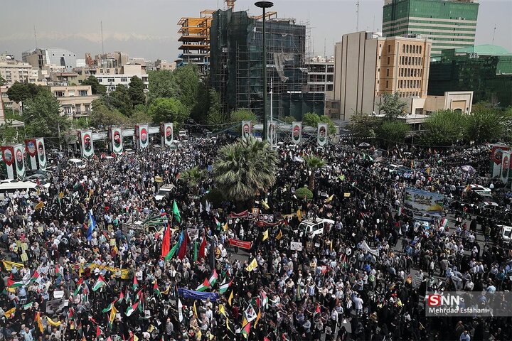 میدان فلسطین امروز چهارشنبه ۲۰ فروردینماه ۱۴۰۴، صحنه تجمع هزاران تهرانی بود که با شعارهایی کوبنده، جنایات رژیم صهیونیستی را محکوم و با مردم غزه ابراز همدردی کردند.