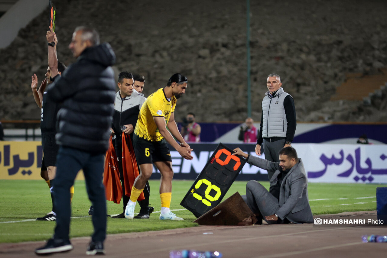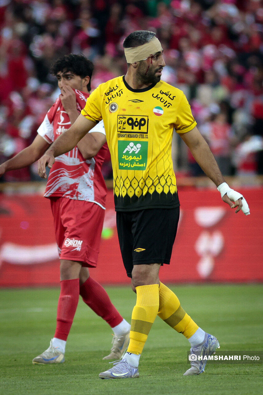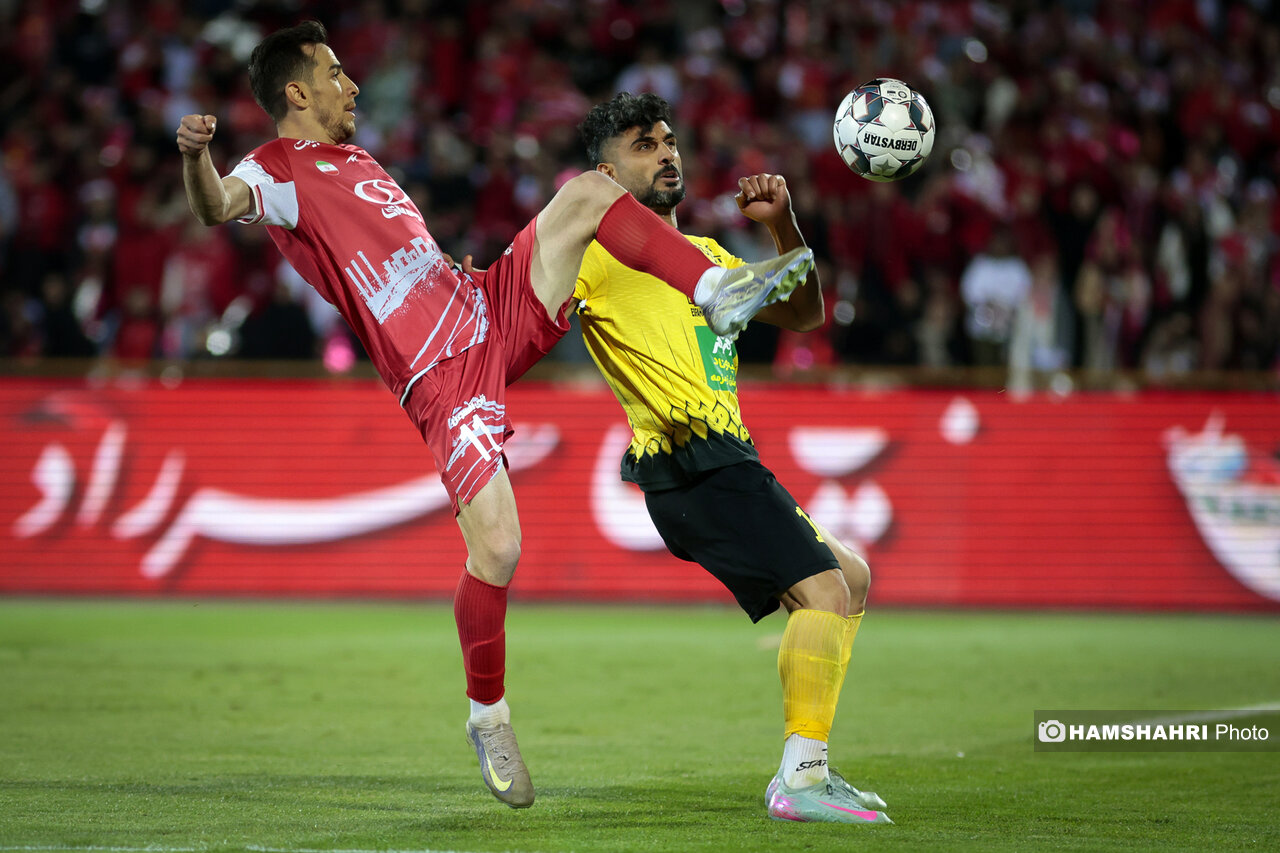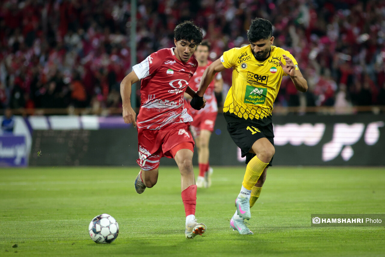 به گزارش همشهری آنلاین؛ تیمهای فوتبال پرسپولیس و سپاهان در چارچوب رقابتهای هفته 27 لیگ برتر ایران به مصاف هم رفتند و در انتها این سپاهان با برتری 2 بر صفر پرسپولیس را شکست داد.| عکاس: نوید ده سری