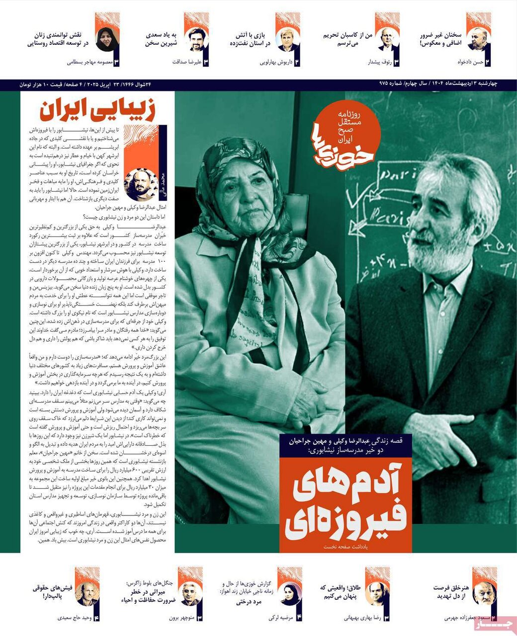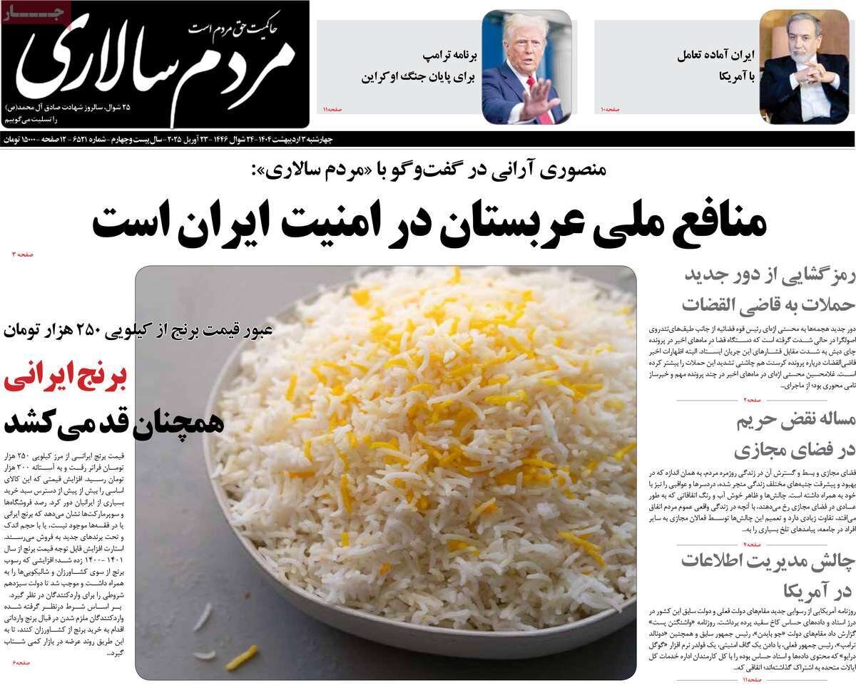 ISSN 1735-6393سفر عراقچی به پکن، سخنان رئیس جمهور درباره آمادگی ایران برای توافق و سقوط قیمت ارز در بازار از تیترهای مطبوعات امروز است.