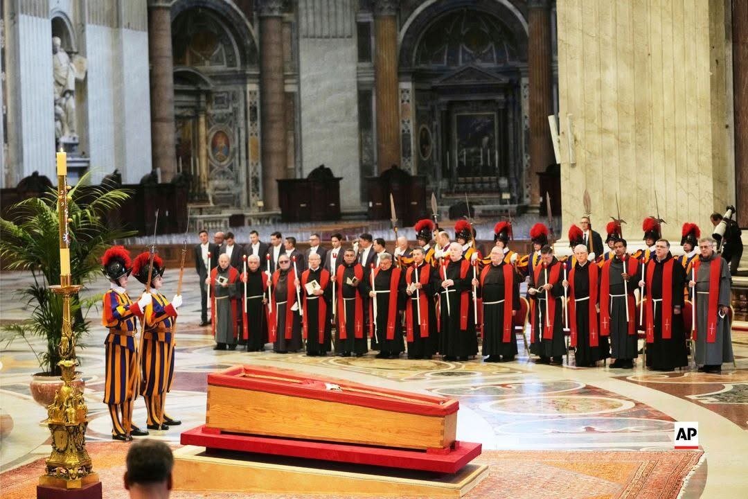 به گزارش همشهری آنلاین، کلیسای سنت پیتر تا نیمهشب چهارشنبه و پنجشنبه برای عزاداران باز خواهد ماند. دوره سوگ عمومی در روز جمعه ساعت ۱۹ به وقت محلی پایان مییابد.