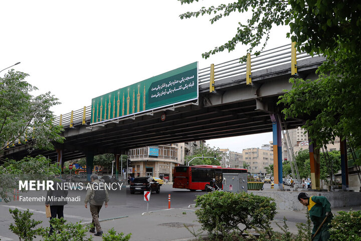 از بنر نصب شده بر روی عرشه پل کریمخان و میدان فلسطین شنبه ۶ اردیبهشت ۱۴۰۴ رونمایی شد.
