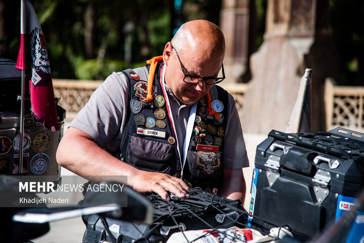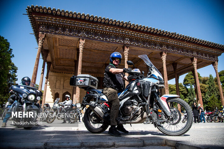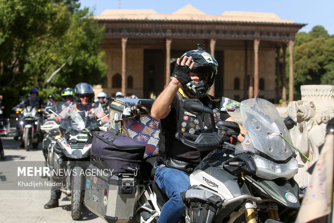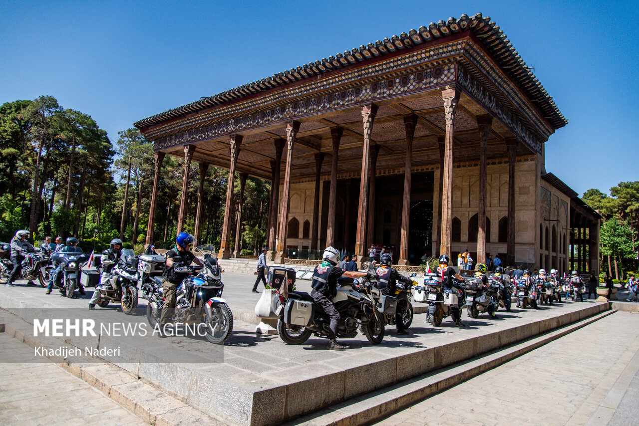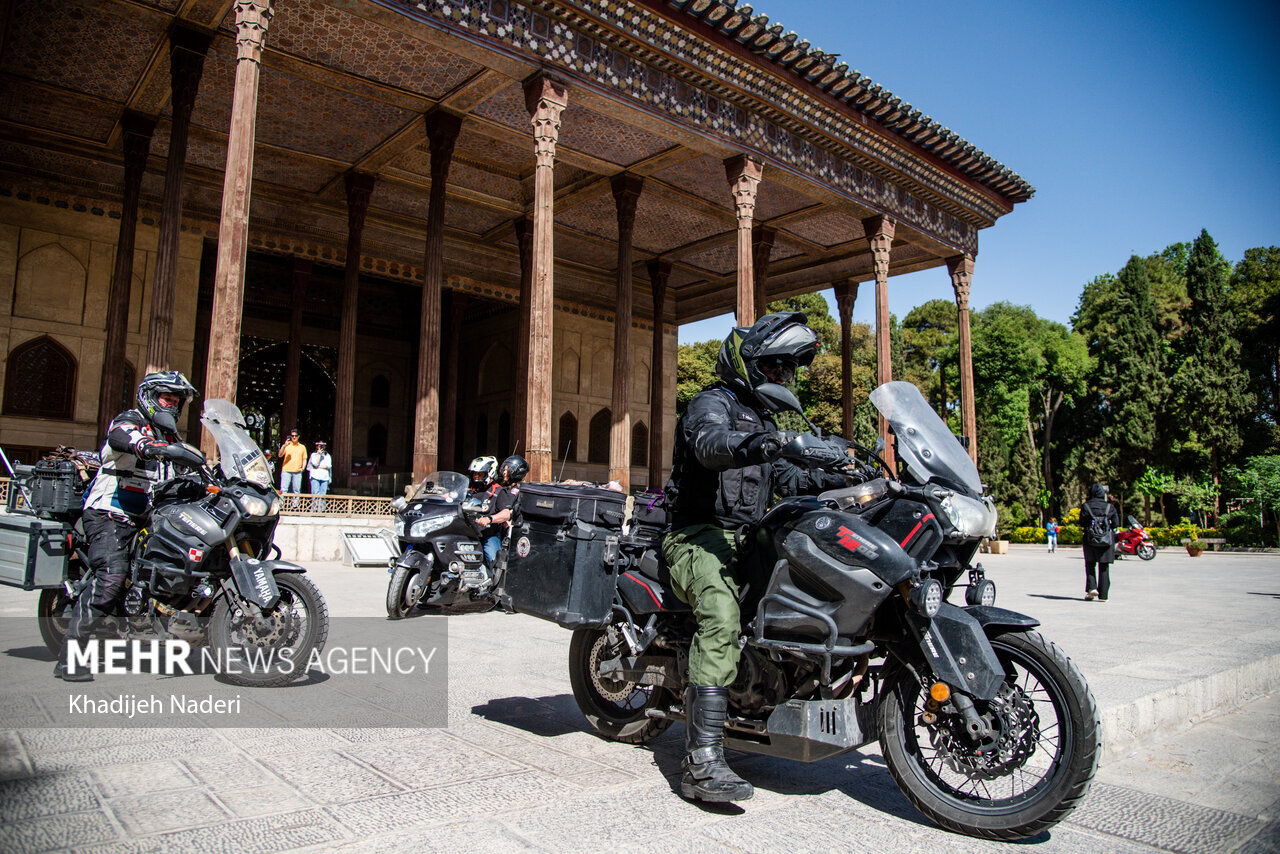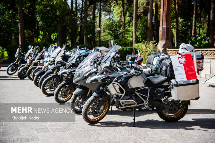 ۳۵ موتورسوار لهستانی بعد از عبور از شش کشور اروپایی وارد ایران شده اند و امروز در ورود به شهر اصفهان از کاخ چهلستون دیدن و مورد استقبال قرار گرفتند.