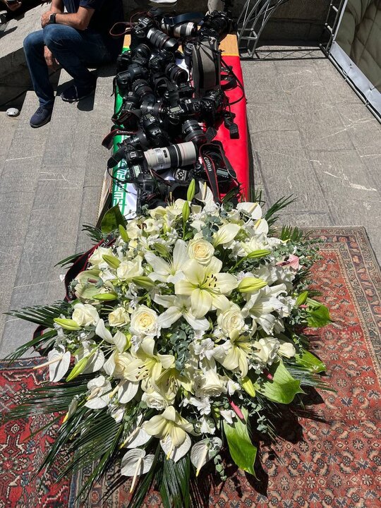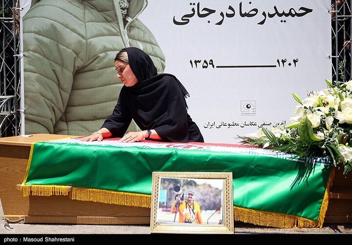 مراسم تشییع پیکر حمیدرضا درجاتی، عکاس و عضو انجمن صنفی عکاسان مطبوعاتی ایران ـ صبح یکشنبه از مقابل خانه هنرمندان با حضور خانواده مرحوم درجاتی، دکتر احمد دنیامالی وزیر ورزش و جوانان و محمد گلزاری دبیر شورای اطلاعرسانی دولت و جامعه رسانه کشور برگزار شد.