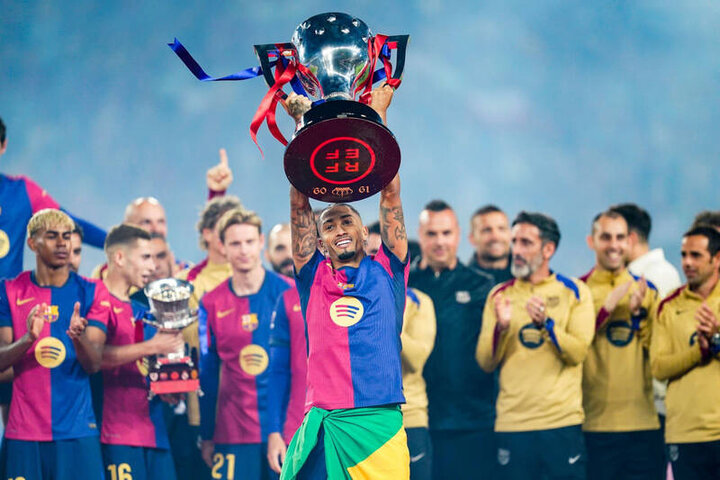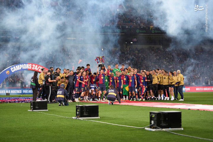 بازیکنان بارسلونا پس از دیدار با ویارئال و پایان آخرین بازی خانگی این فصل خود، جشن قهرمانی به پا کردند.
