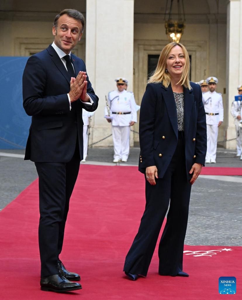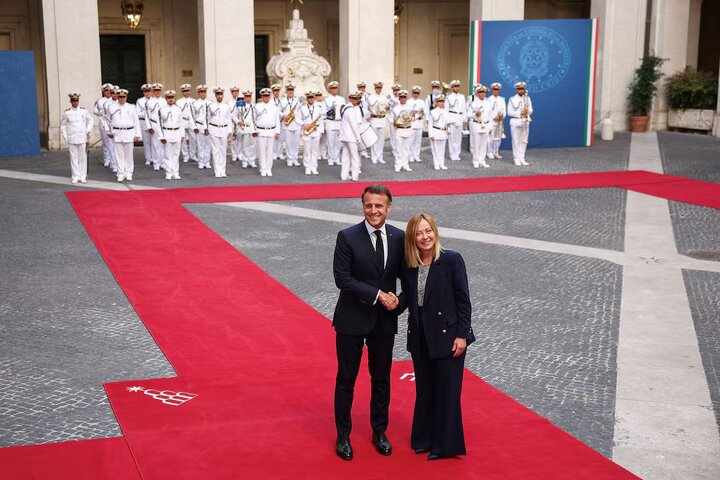 رئیس جمهور فرانسه که به ایتالیا سفر کرده است با «جورجیا ملونی» نخست وزیر این کشور دیدار کرد.