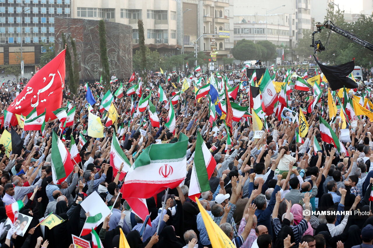 ISSN 1735-6393اجتماع بزرگ مردم تهران پس از اعلام آتش بس در حمایت از نیروهای مسلح در جنگ با رژیم صهیونیستی برگزار شد.