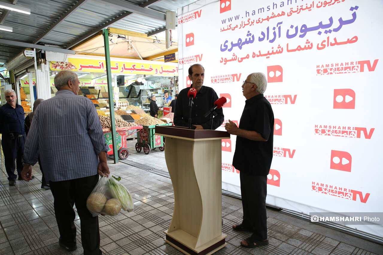 تریبون آزاد شهری با حضور مردم و کسبه در بازار میوه و تره بار منطقه بیست و یک برگزار شد.