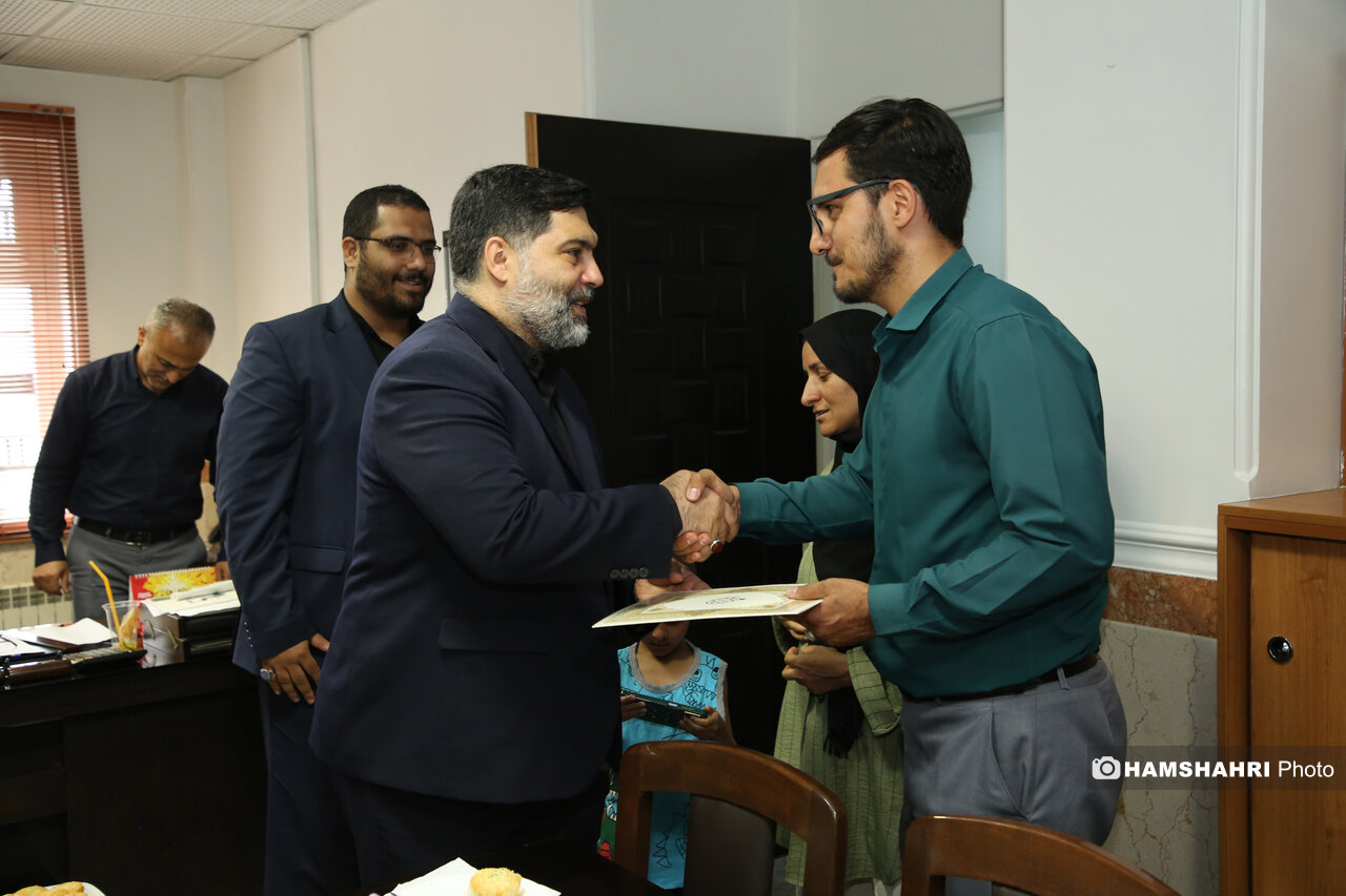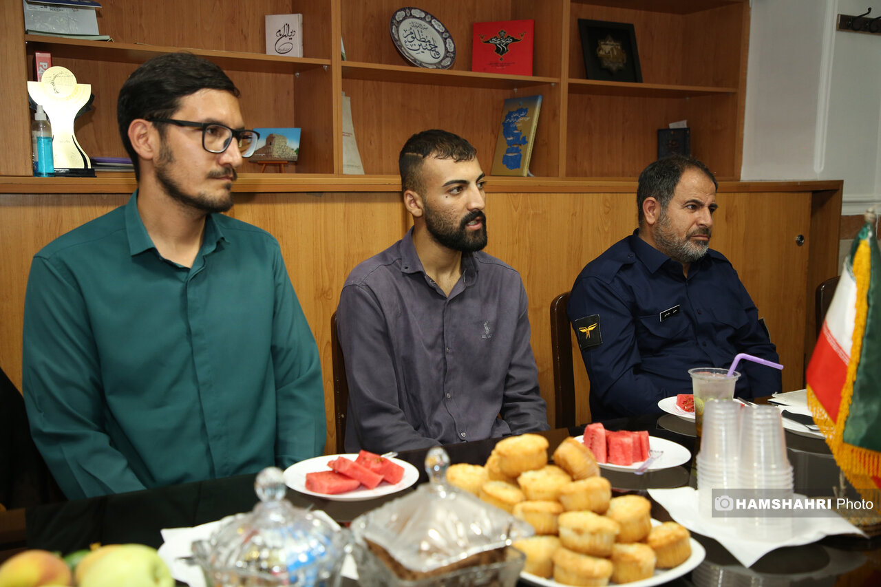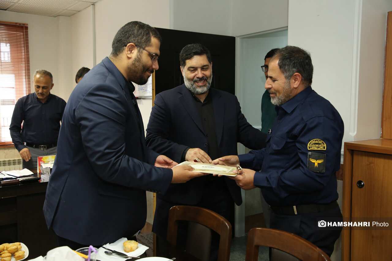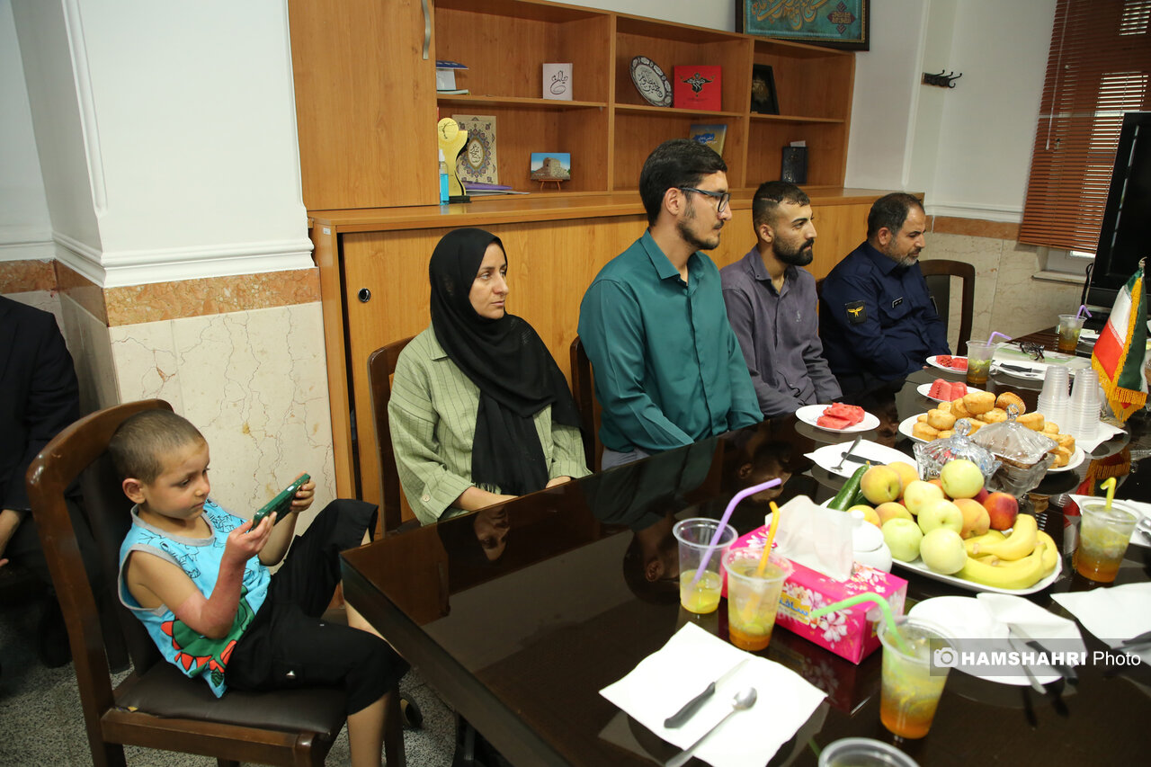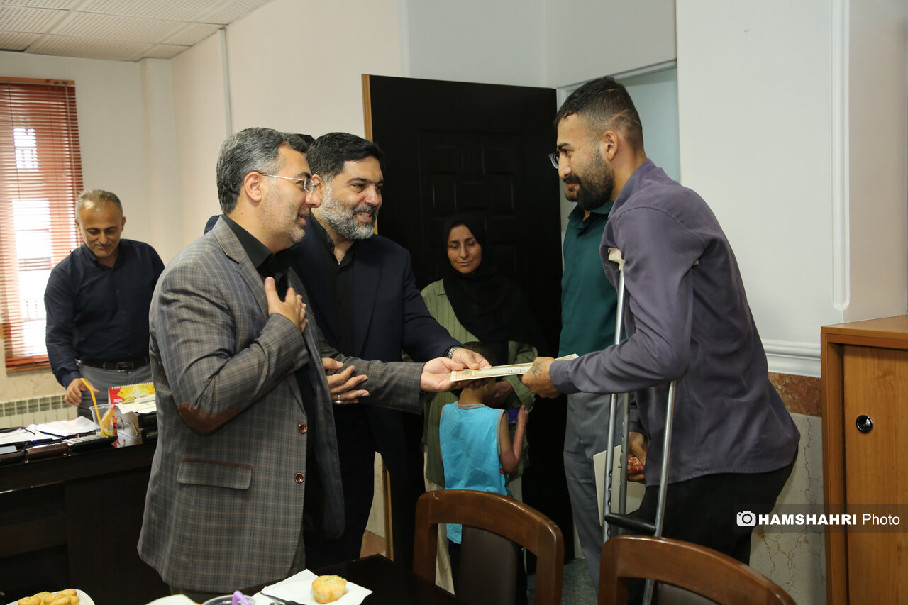 علیرضا نادعلی نائب رئیس کمیسیون فرهنگی و اجتماعی شورای اسلامی شهر تهران با همراهی رضا شنگی شهردار منطقه 17 با سه تن از کارکنان میدان میوه و تره بار که در جنگ تحمیلی 12 روزه جانباز شدند دیدار کردند.