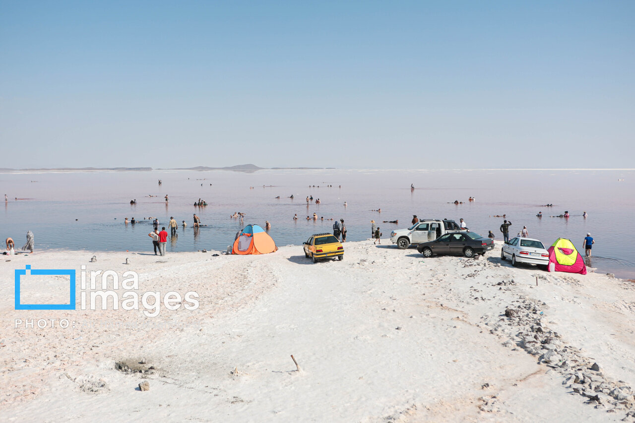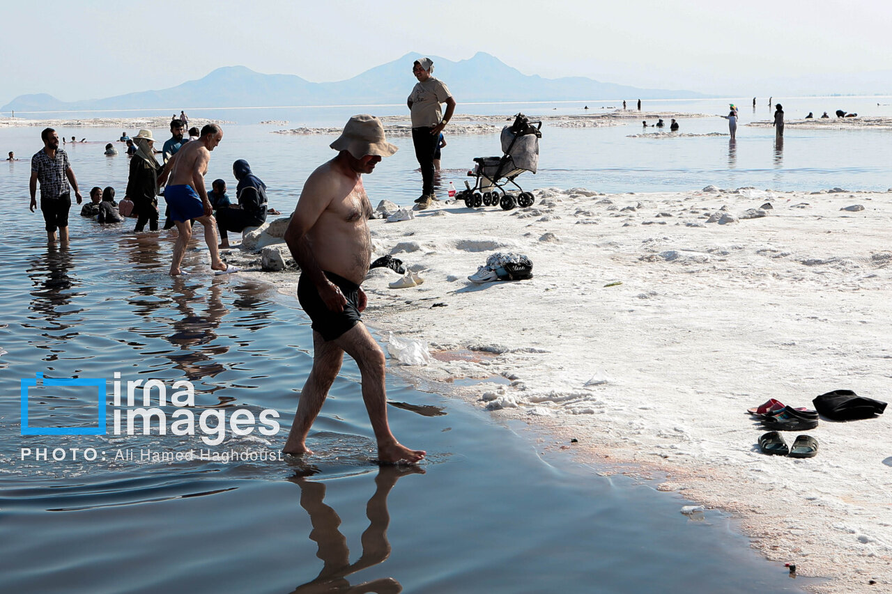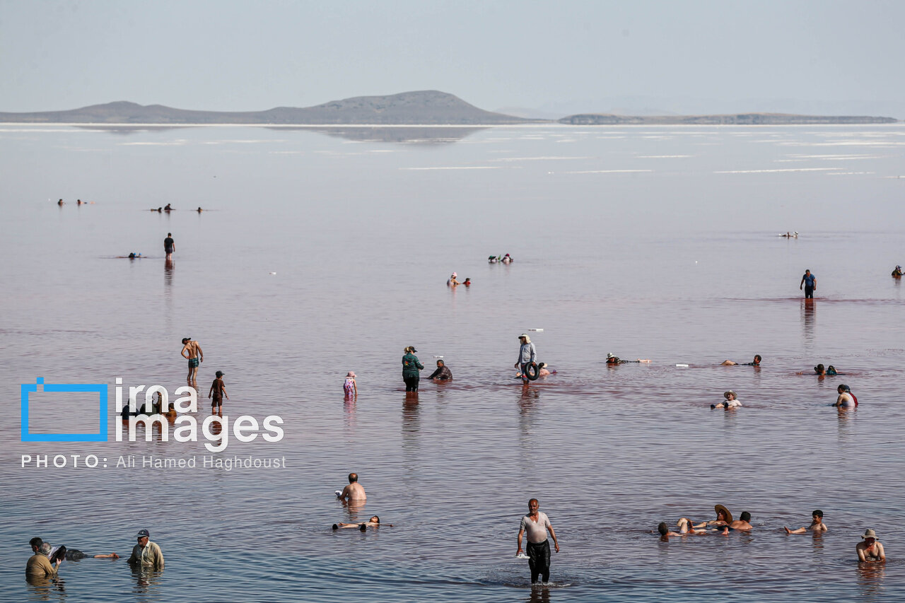 همزمان با افزایش دمای هوا، گروهی از شهروندان آذربایجان شرقی و غربی برای شنا و تفریح به ساحل جزیره اسلامی در نزدیکی پل میانگذر شهید کلانتری دریاچه ارومیه میروند.