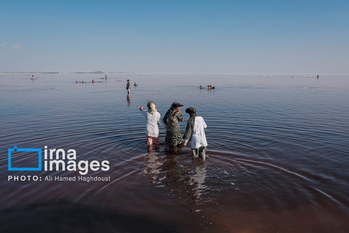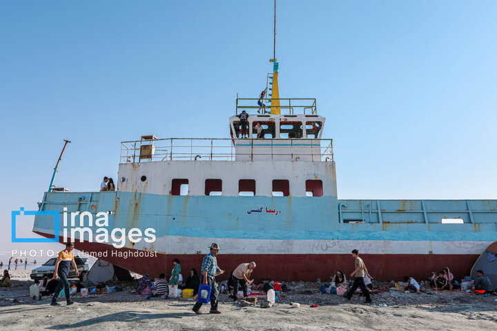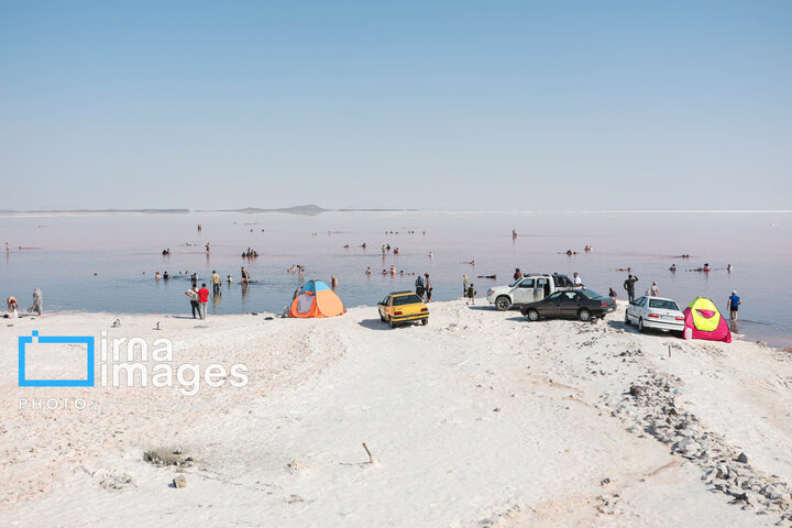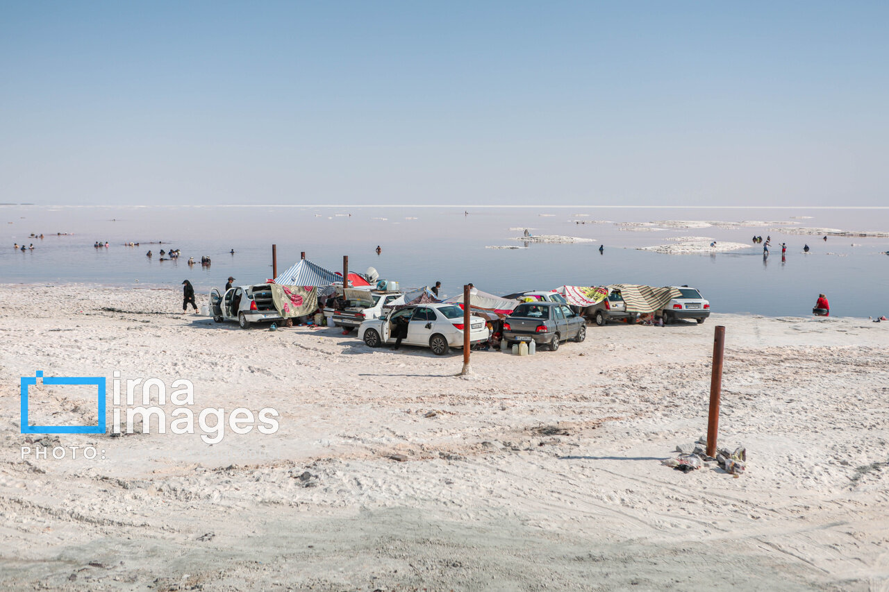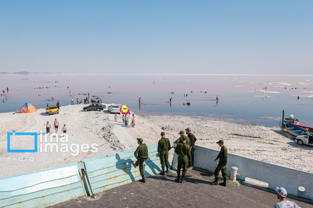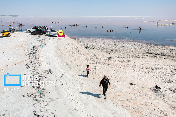همزمان با افزایش دمای هوا، گروهی از شهروندان آذربایجان شرقی و غربی برای شنا و تفریح به ساحل جزیره اسلامی در نزدیکی پل میانگذر شهید کلانتری دریاچه ارومیه میروند.