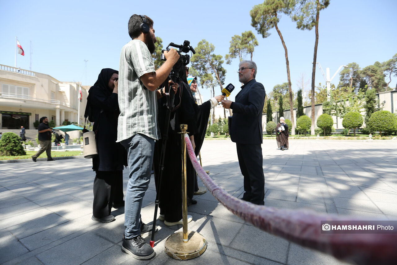 جمعی از وزیران و اعضای کابینه دولت چهاردهم، صبح چهارشنبه (۲۹ مرداد ۱۴۰۴) پس از جلسه هیأت دولت، در محوطه نهاد ریاست جمهوری در جمع خبرنگاران حاضر شدند و به سوالات آنها پاسخ دادند.