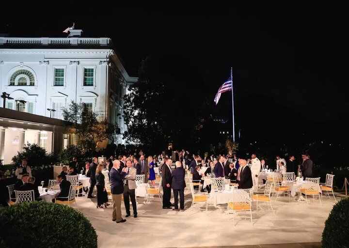 به گزارش همشهری آنلاین به نقل از فرارو، رئیس جمهوری آمریکا در این مراسم که با حضور شماری از سناتورها و نمایندگان جمهوریخواه برگزار شد، این فضا را نمادی از «مهماننوازی و رهبری آیندهنگر» توصیف کرد. حساب کاخ سفید در شبکه X تصاویری از این ضیافت را منتشر کرد.