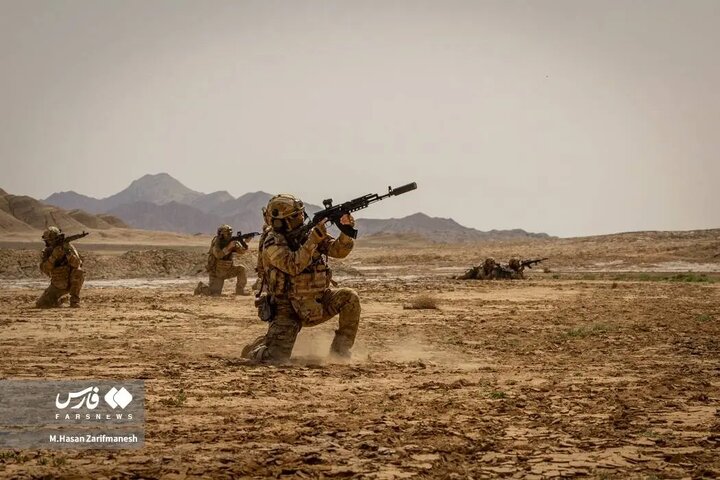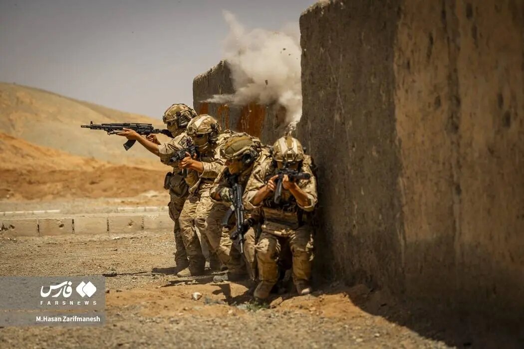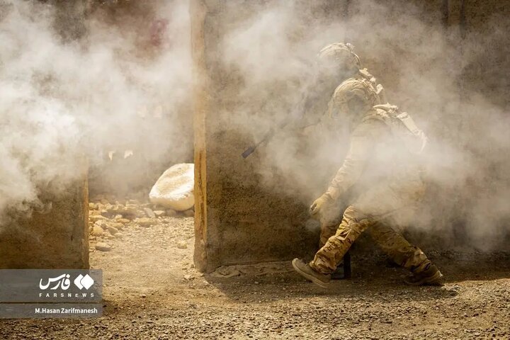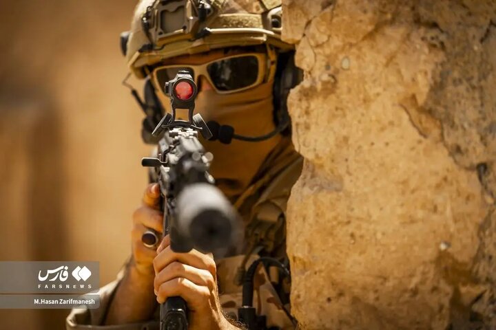 تمرینات رزمی-تاکتیکی نیروهای یگان ویژه فاتحین سپاه محمد رسول الله(ص) با استفاده از لباس و تجهیزات جدید در مناطق ساختهشده انجام شد.