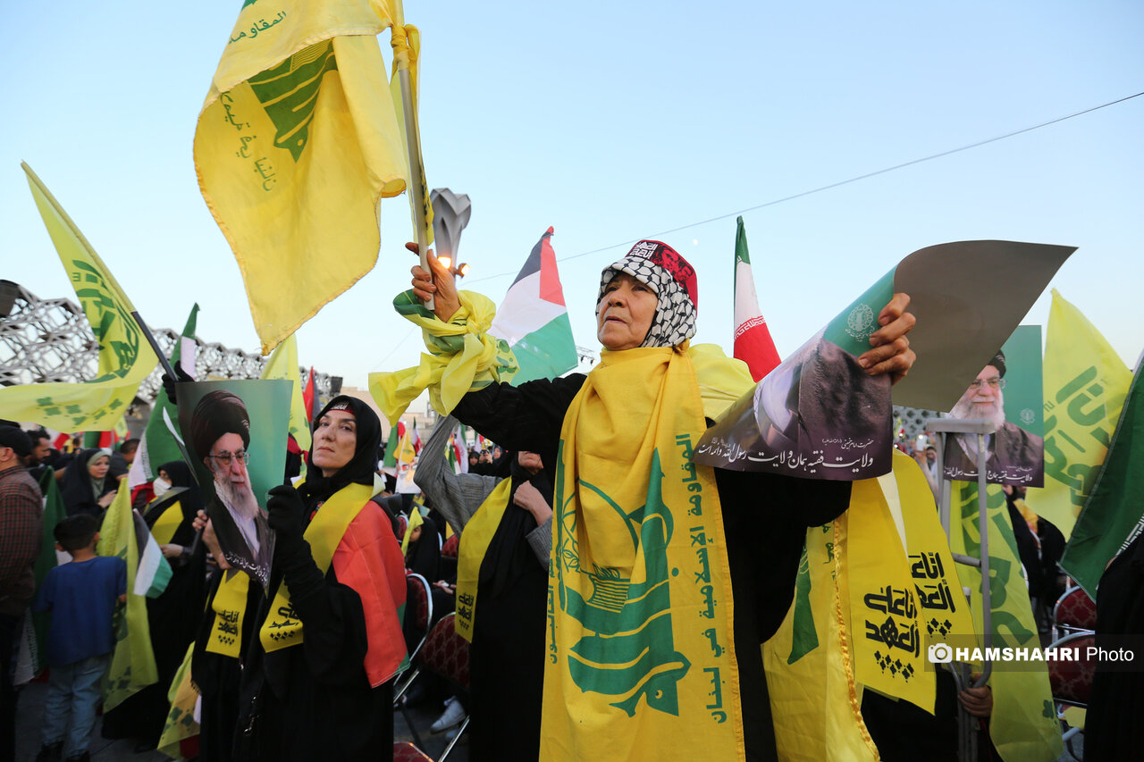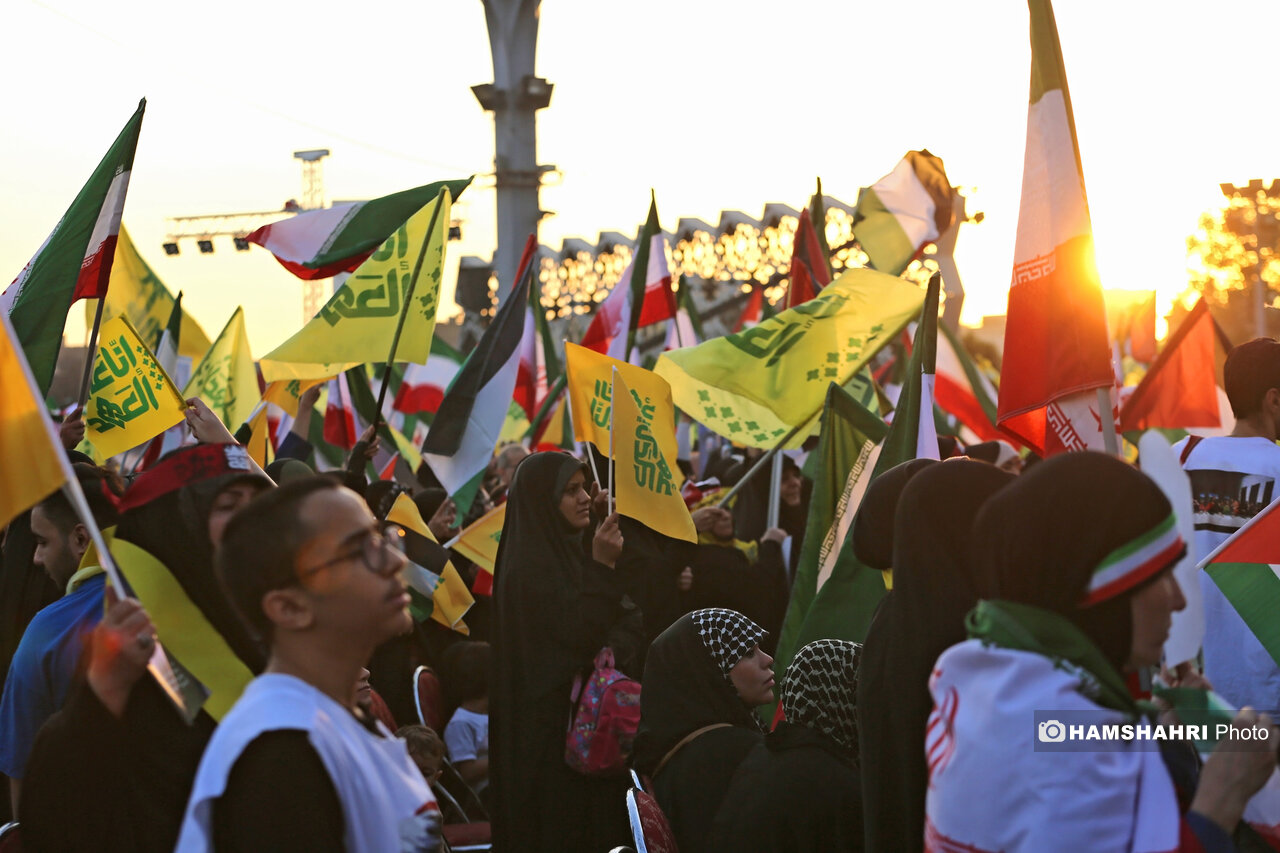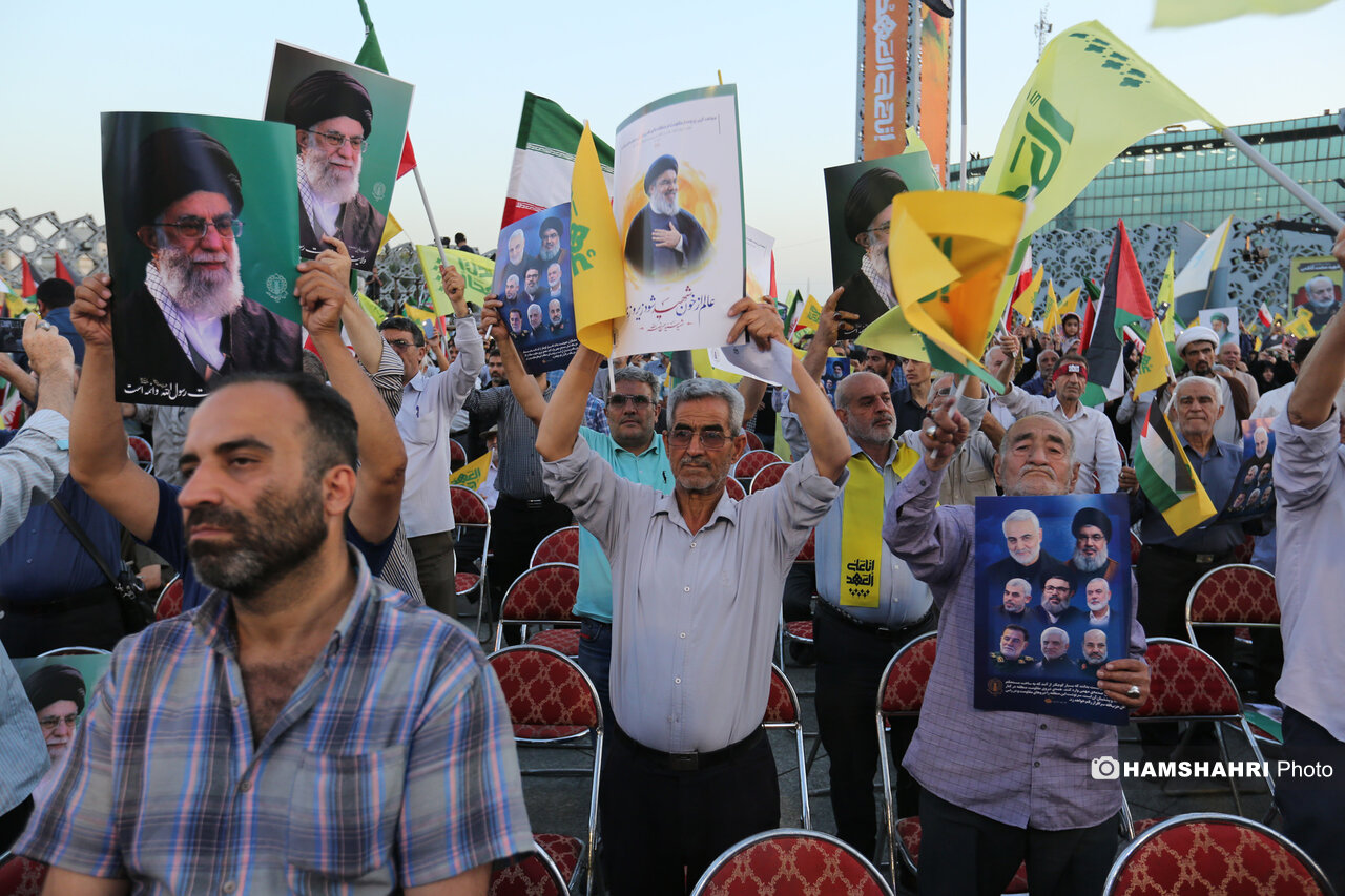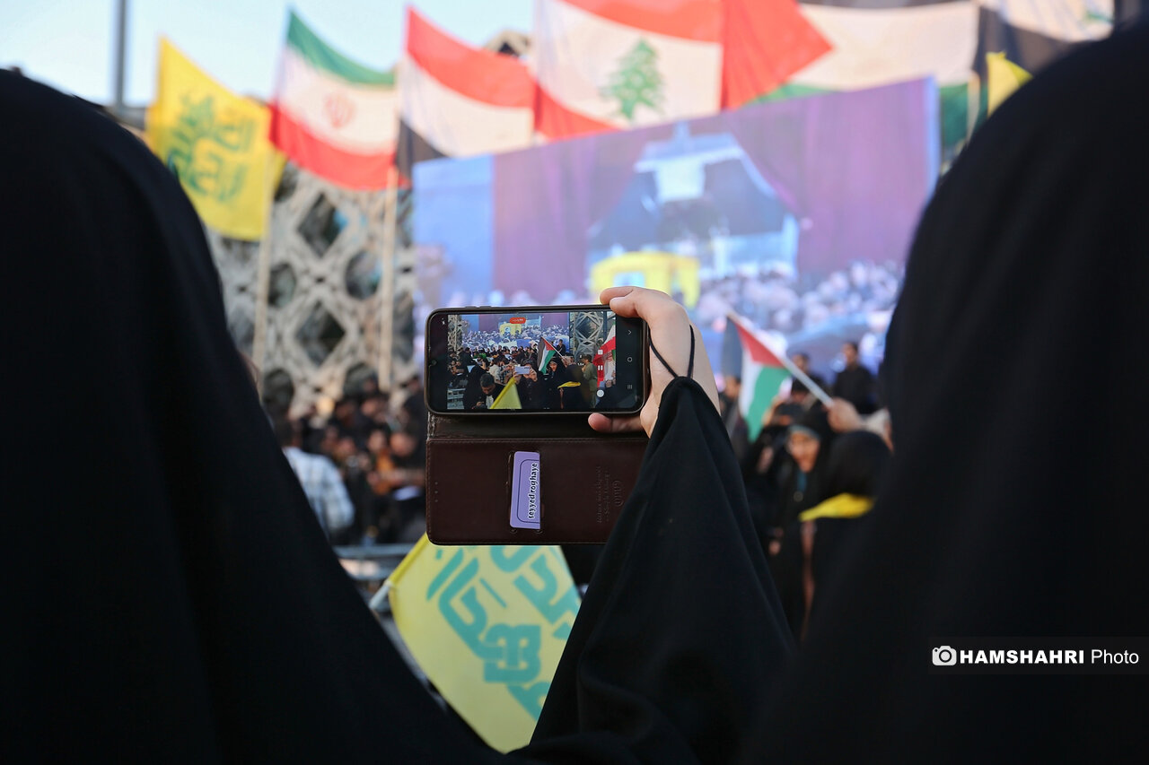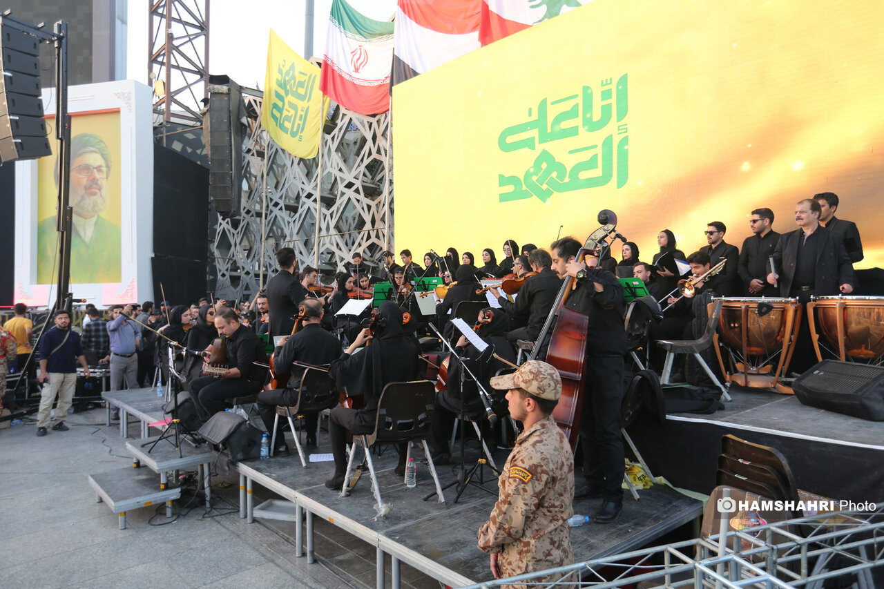 اجتماع مردمی «انا علی العهد» به مناسبت اولین سالگرد شهادت رهبران و فرماندهان مقاومت سید حسن نصرالله، سید هاشم صفی الدین و عباس نیلفروشان بعد از ظهر امروز پنجشنبه ۱۰ مهر ۱۴۰۴ با حضور اقشار مختلف مردم و جمعی از مقامات کشوری و لشگری در میدان امام حسین تهران برگزار شد.