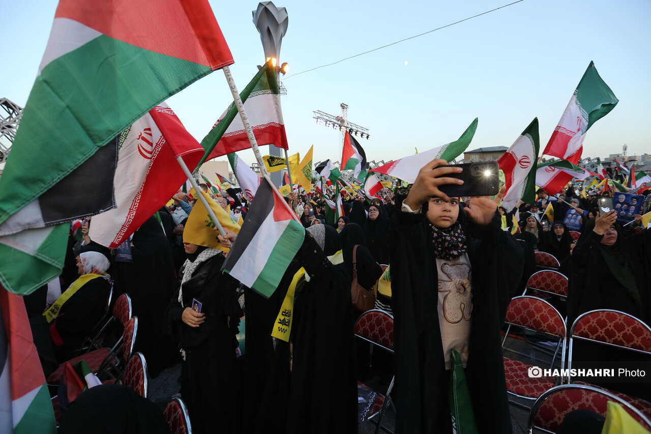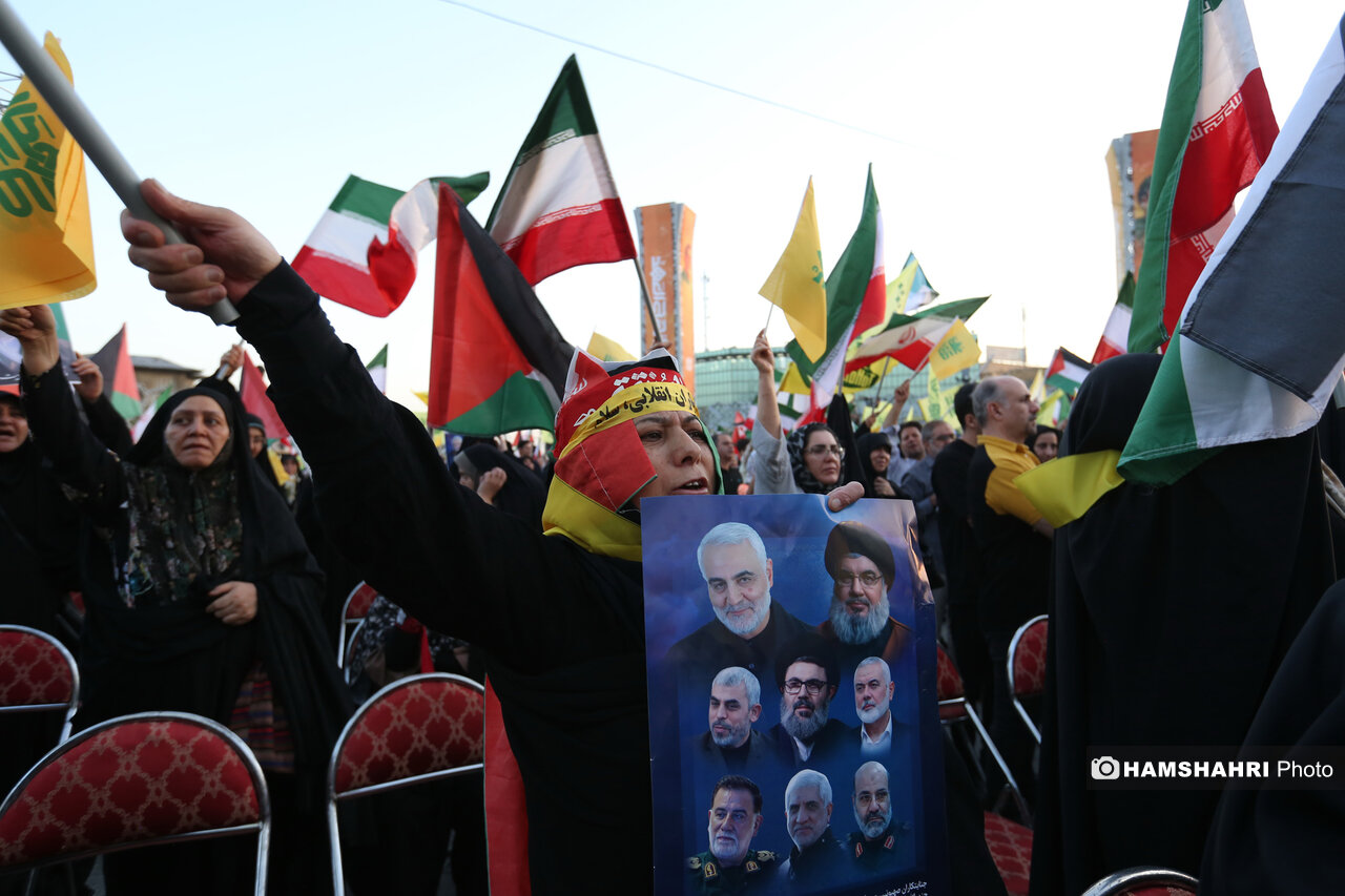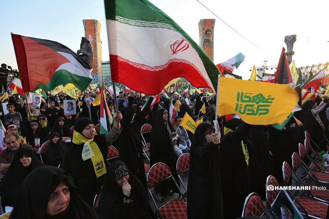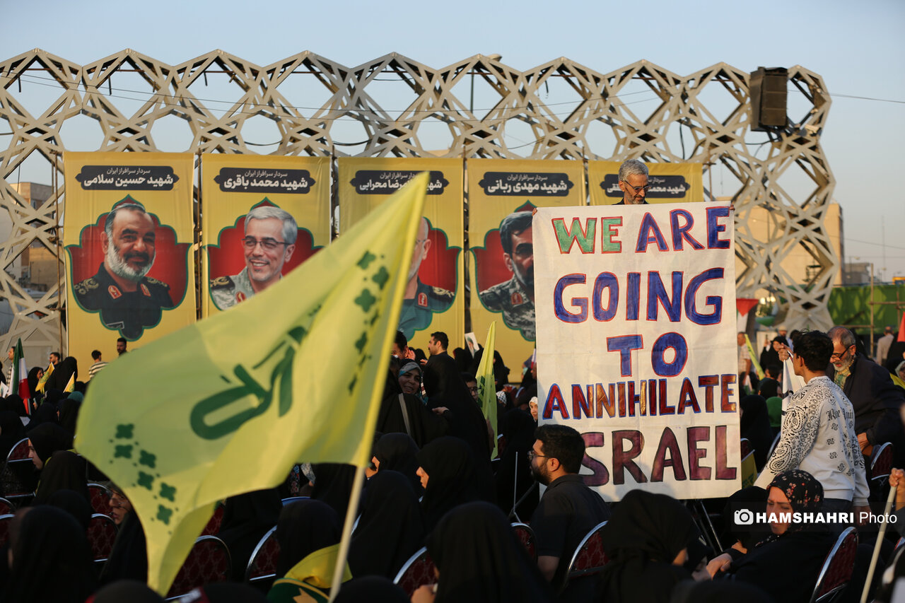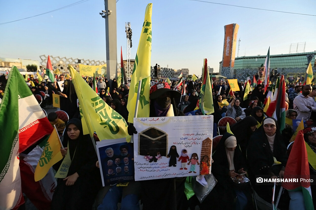 اجتماع مردمی «انا علی العهد» به مناسبت اولین سالگرد شهادت رهبران و فرماندهان مقاومت سید حسن نصرالله، سید هاشم صفی الدین و عباس نیلفروشان بعد از ظهر امروز پنجشنبه ۱۰ مهر ۱۴۰۴ با حضور اقشار مختلف مردم و جمعی از مقامات کشوری و لشگری در میدان امام حسین تهران برگزار شد.