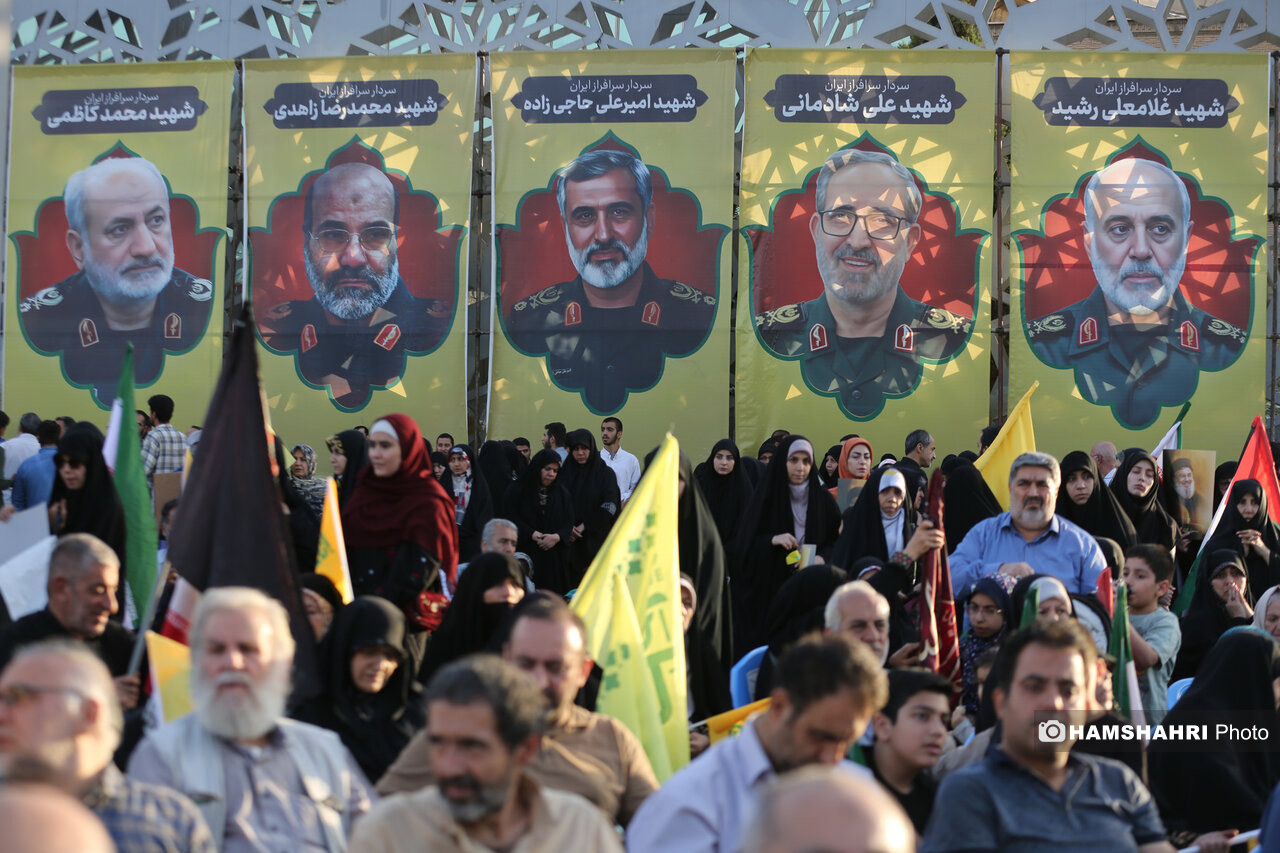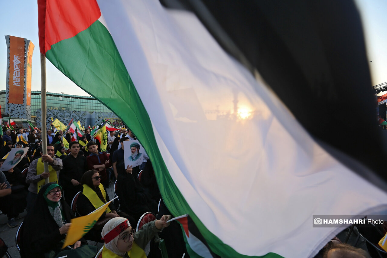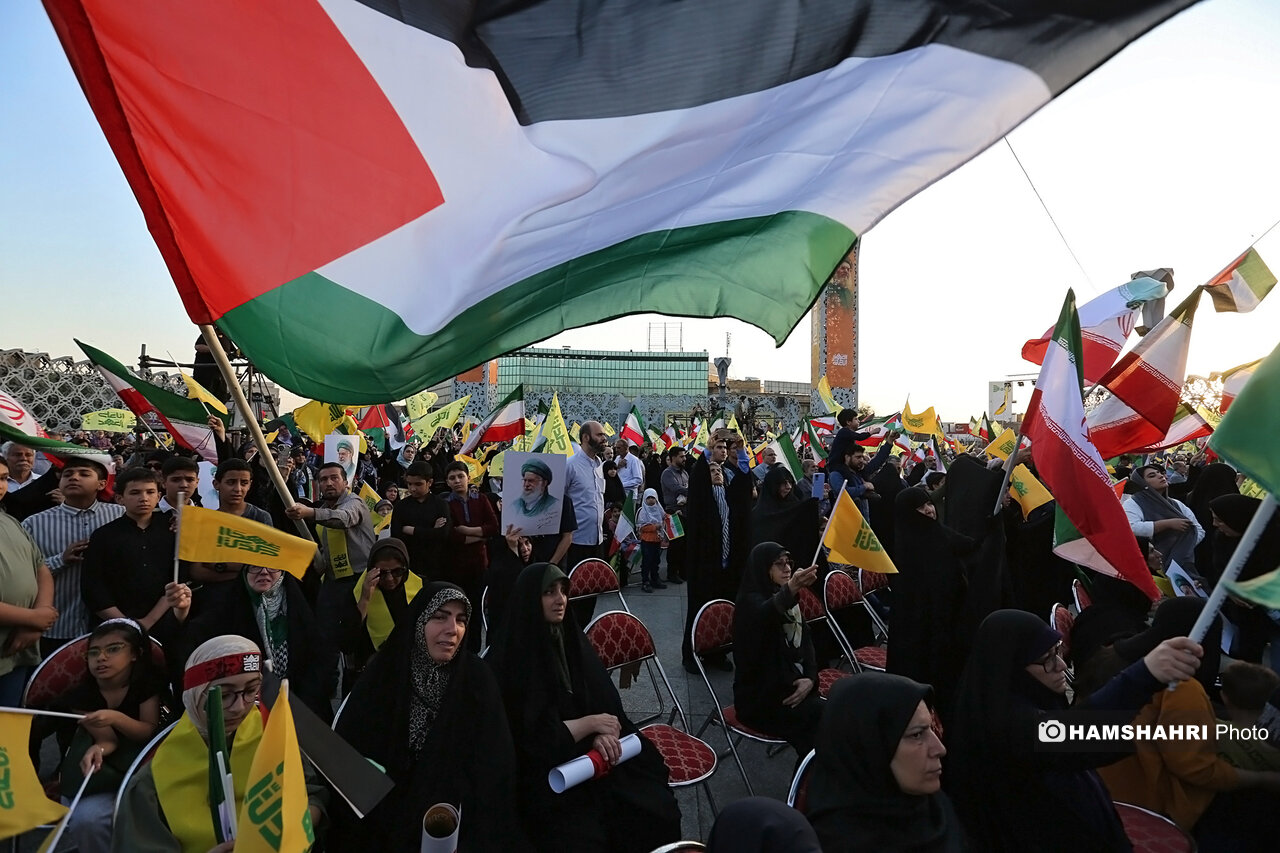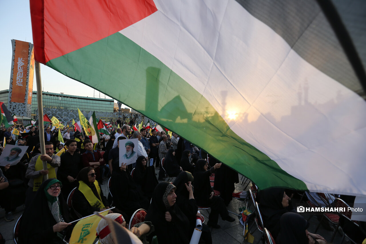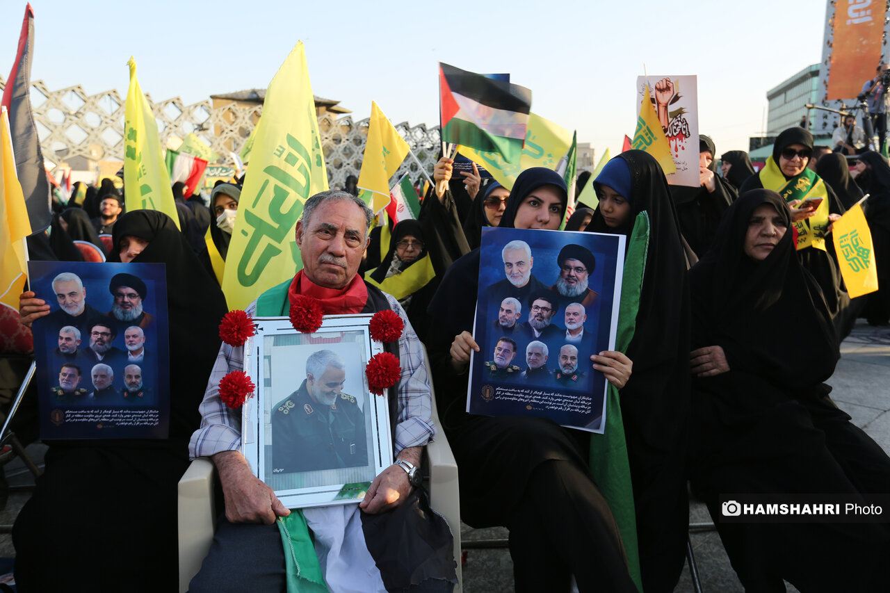 اجتماع مردمی «انا علی العهد» به مناسبت اولین سالگرد شهادت رهبران و فرماندهان مقاومت سید حسن نصرالله، سید هاشم صفی الدین و عباس نیلفروشان بعد از ظهر امروز پنجشنبه ۱۰ مهر ۱۴۰۴ با حضور اقشار مختلف مردم و جمعی از مقامات کشوری و لشگری در میدان امام حسین تهران برگزار شد.